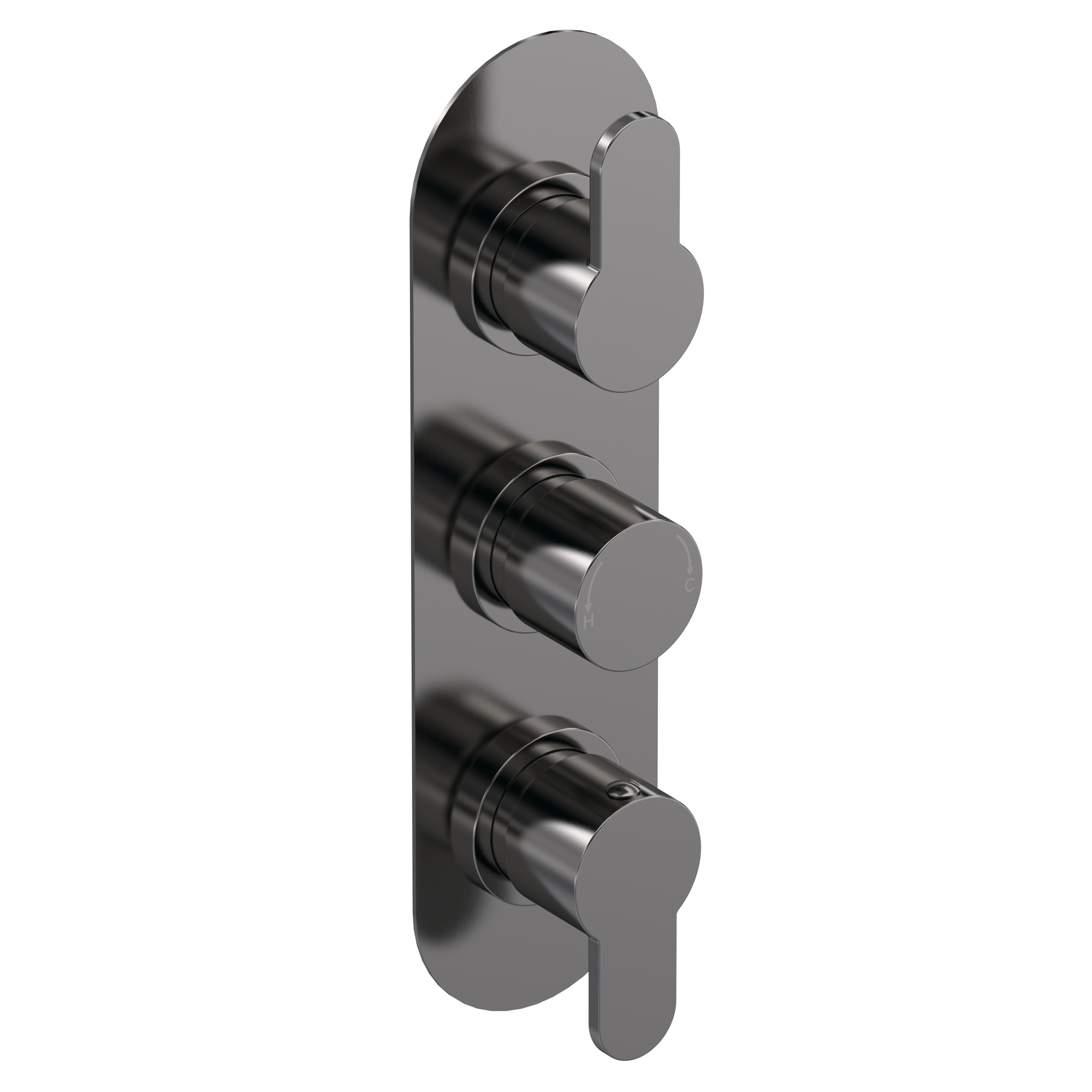 Triple Control Black Round Concealed Thermostatic Shower Mixer Valve - 2 Outlet