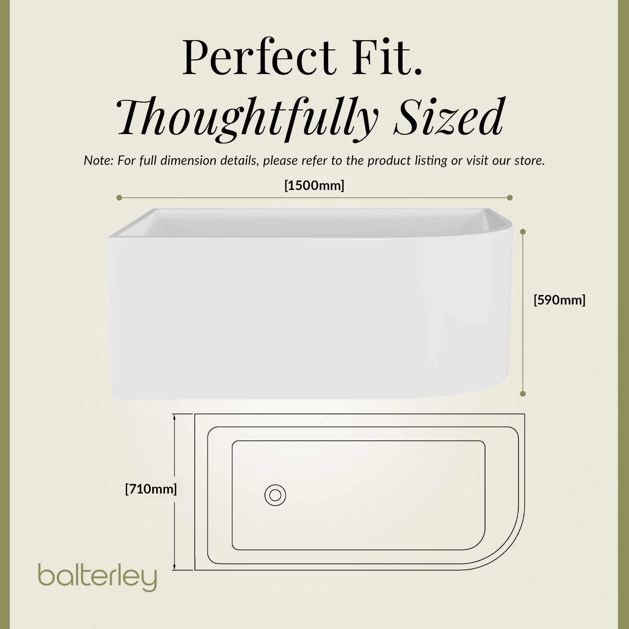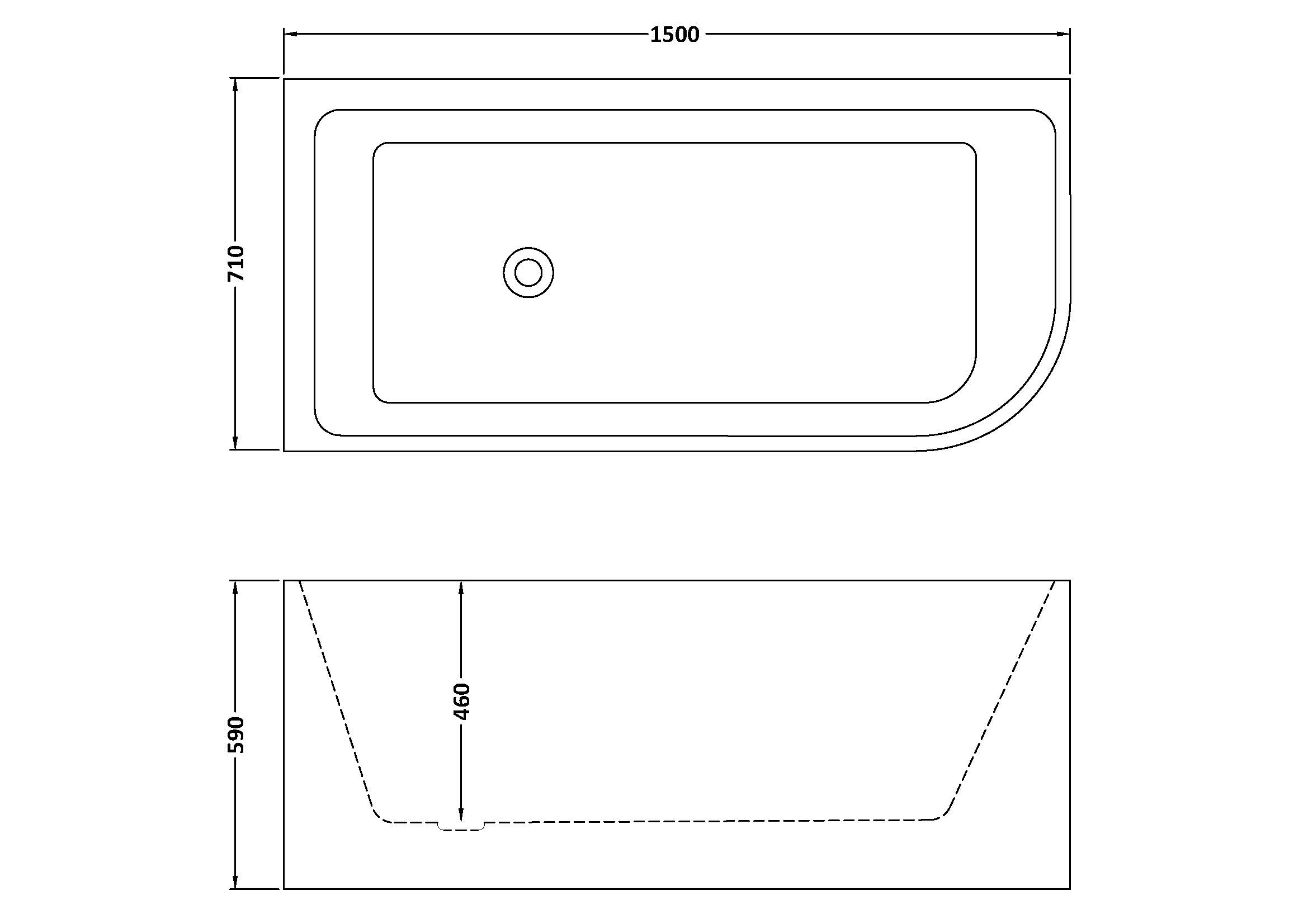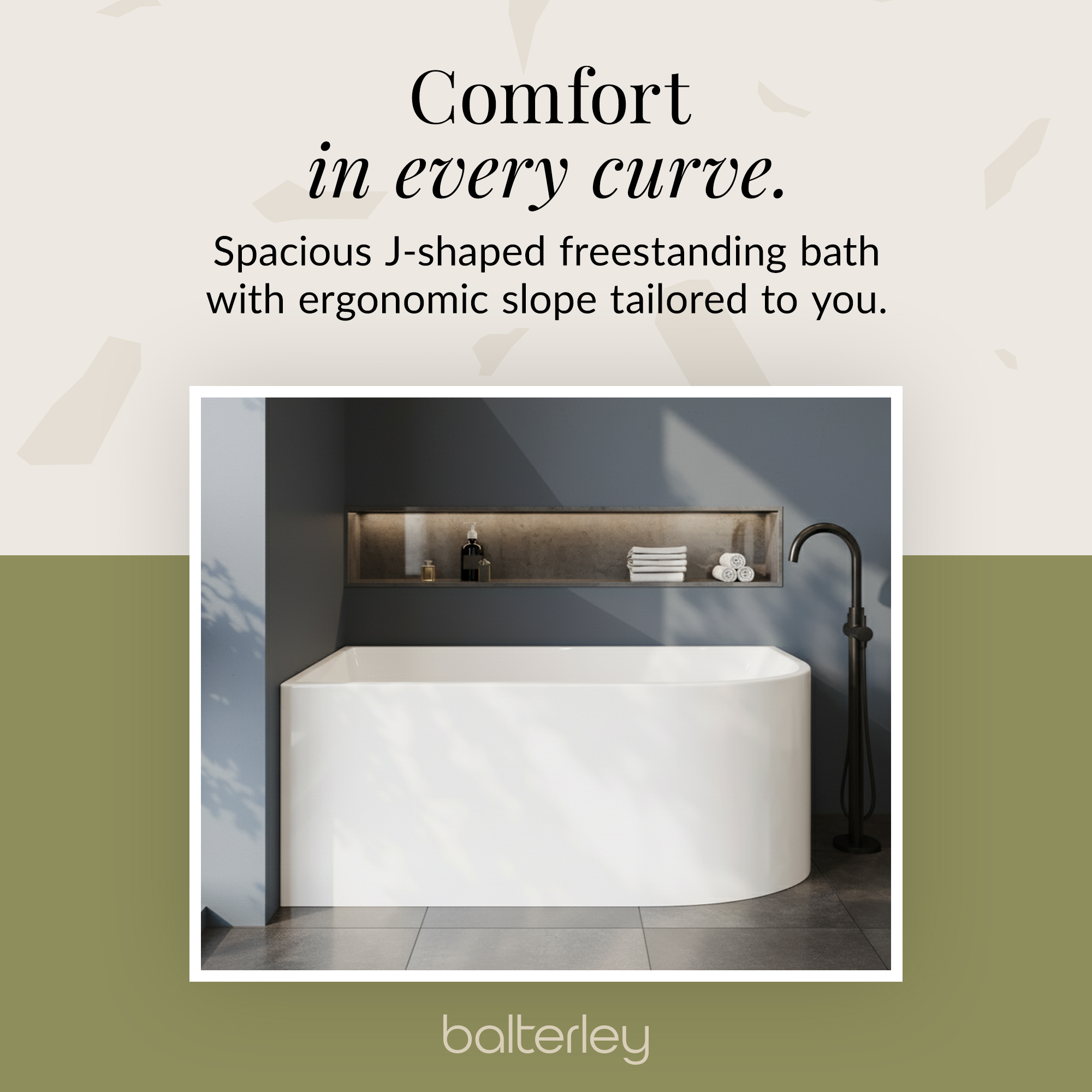 Left Hand J-Shaped Freestanding Bath from Balterley - 1500mm x 710mm