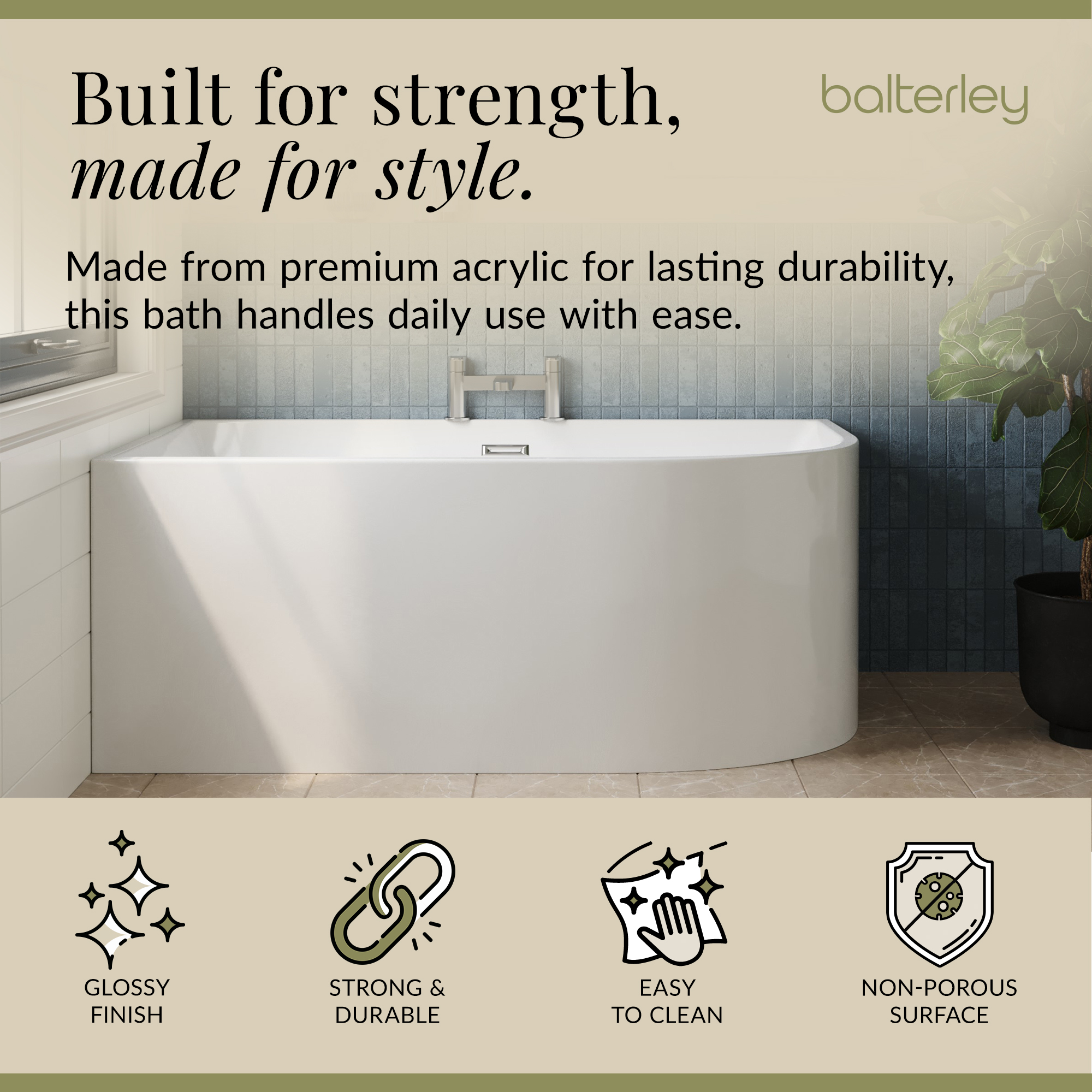 Back To Wall Double Ended Bath with Panel 1700 x 750mm Bathroom