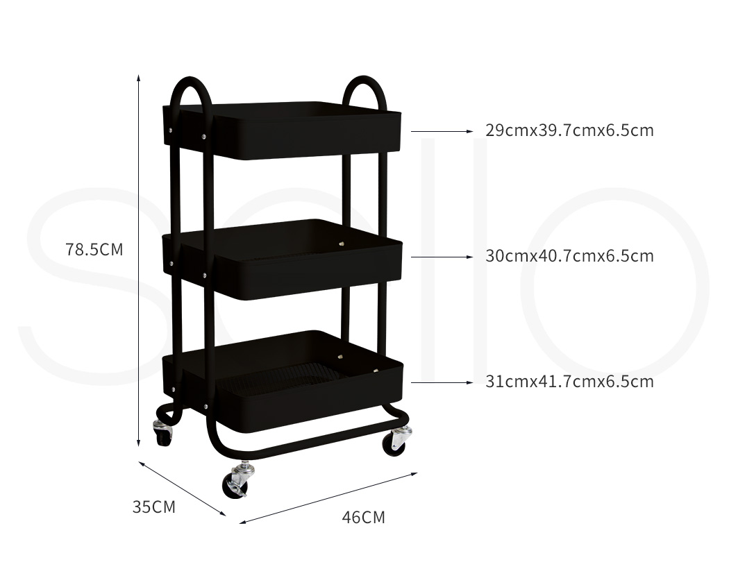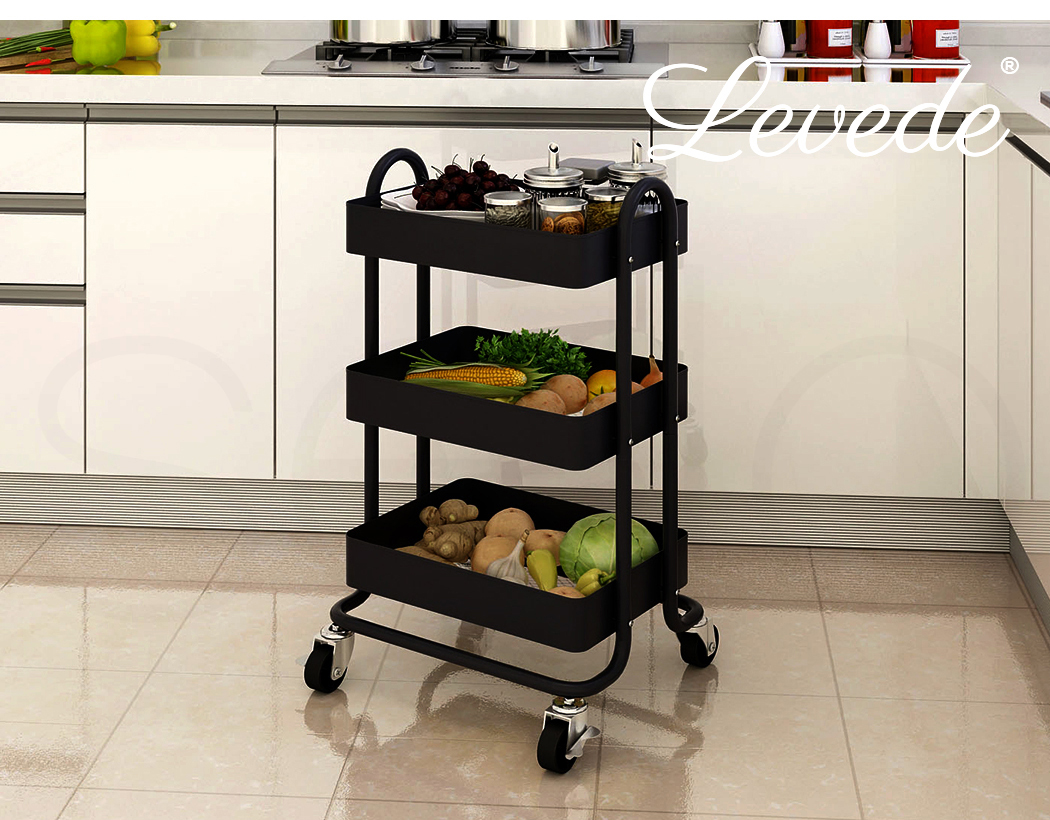 Levede 3 Tier Storage Trolley Cart on Wheels Kitchen Utility Rolling Rack Shelf