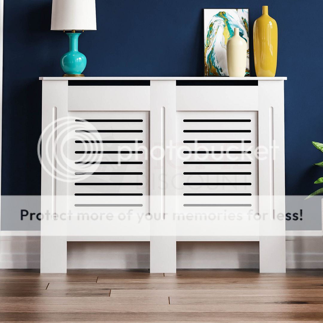 HOME DISCOUNT Milton Radiator Cover MDF Modern Cabinet Slatted Grill, White, Medium