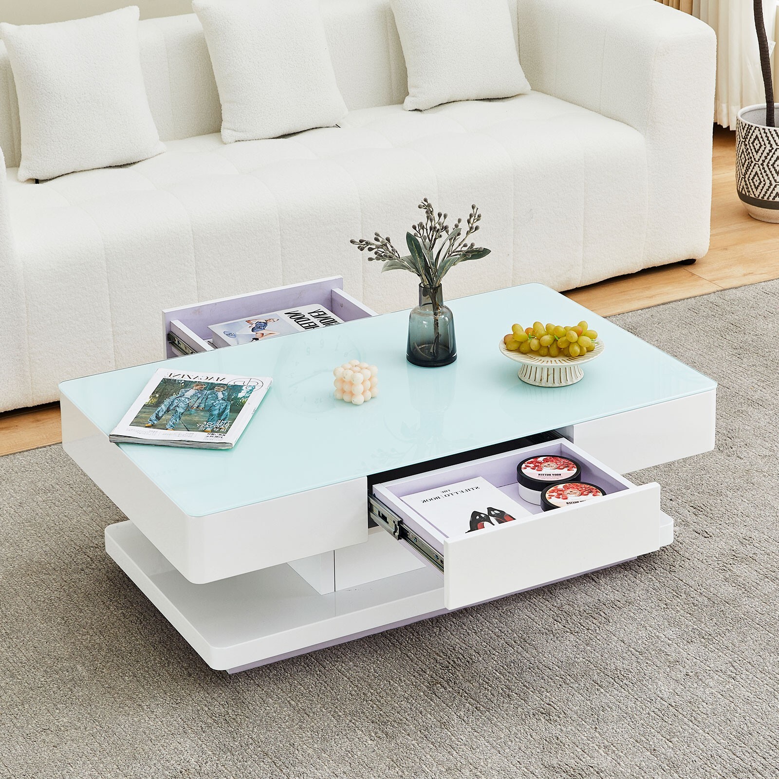 High Gloss LED Coffee Table With Storage 2 Drawers Modern Living Room Furniture