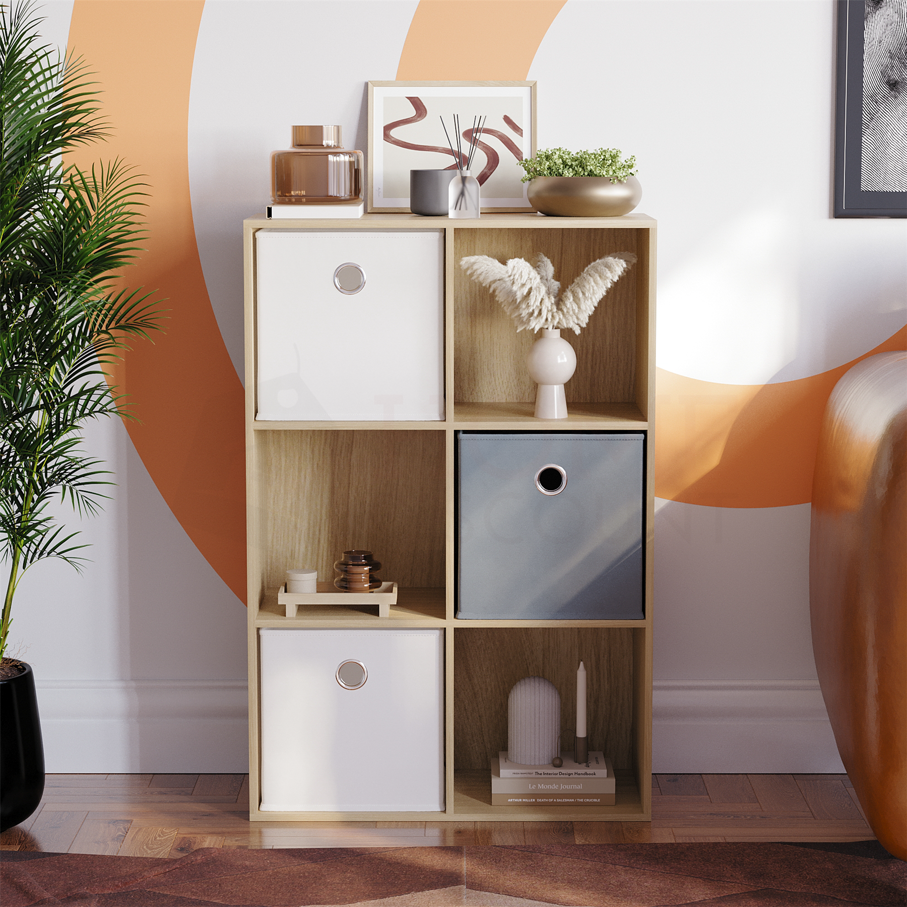 Ideal for offices, bedrooms and living rooms, with plenty of storage, this cube bookcase can transform unused space into a modern and chic display. 4 Cube: H 64.5 x W 65 x D 29 cm. 6 Cube: H 96.5 x W 64.5 x D 29 cm.