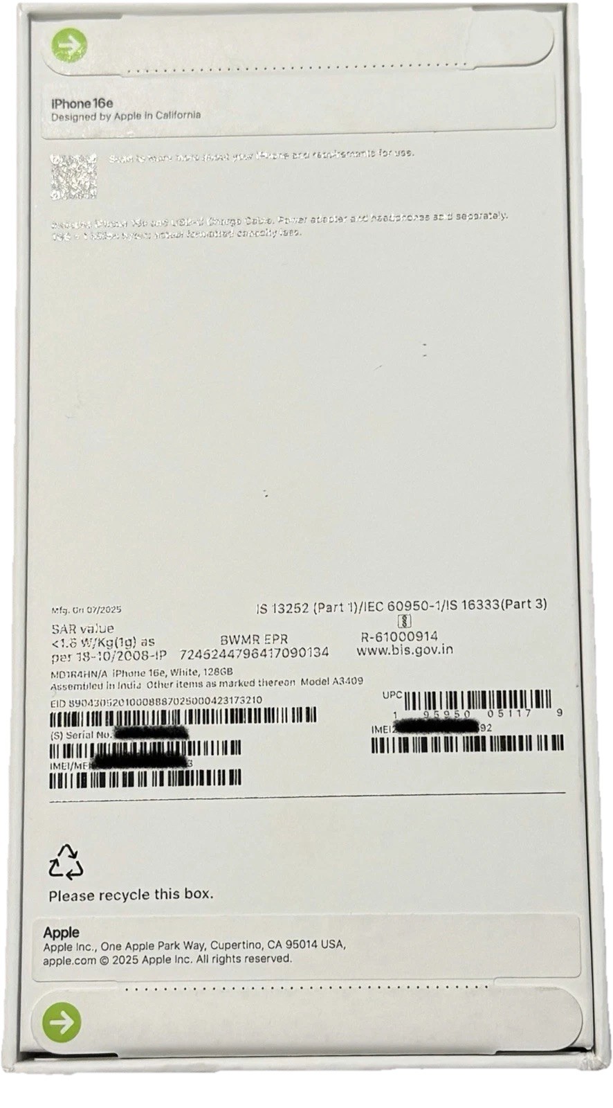 Apple iPhone 16E 128GB 5G Unlocked Brand New Condition Original Box - UK Model
