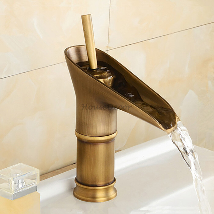 Tinor - Waterfall Bathroom Sink Faucet, Brass Single Handle Sink Faucet, Bathroom Sink Faucet, Single Lever Antique Brass Bamboo Bathroom Sink Mixer