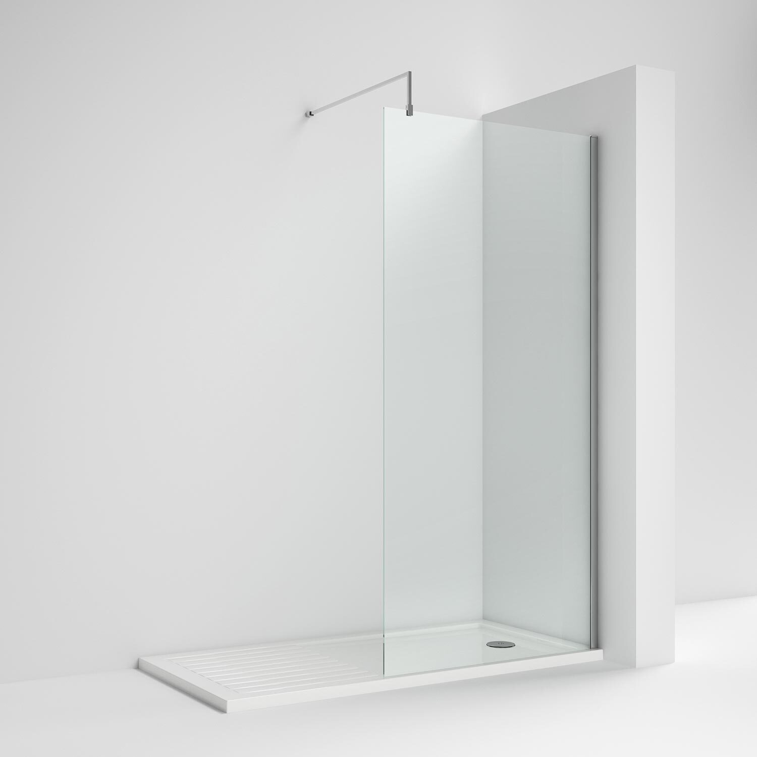 Nuie Premier Chrome Wet Room Glass Screen - 800mm Wide
