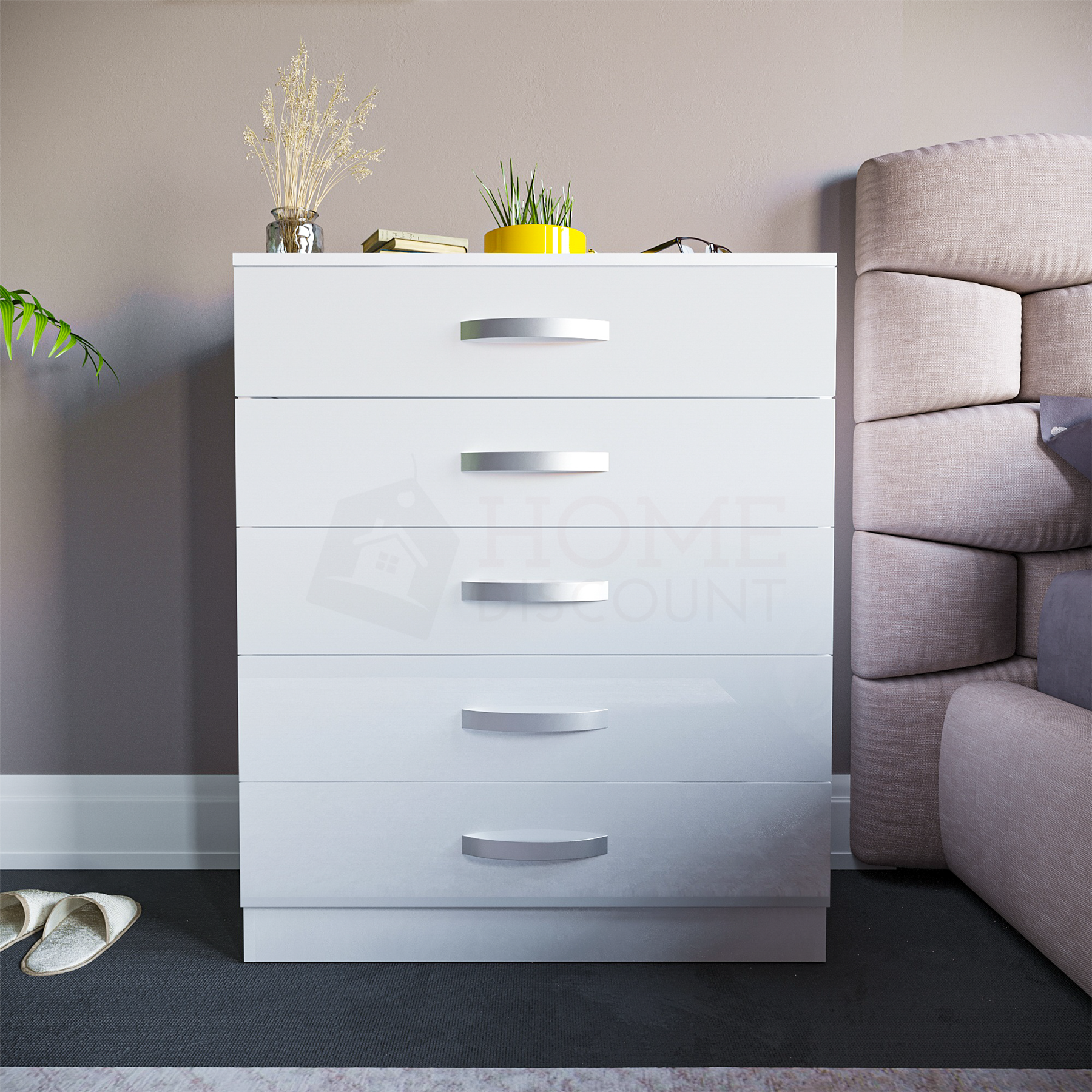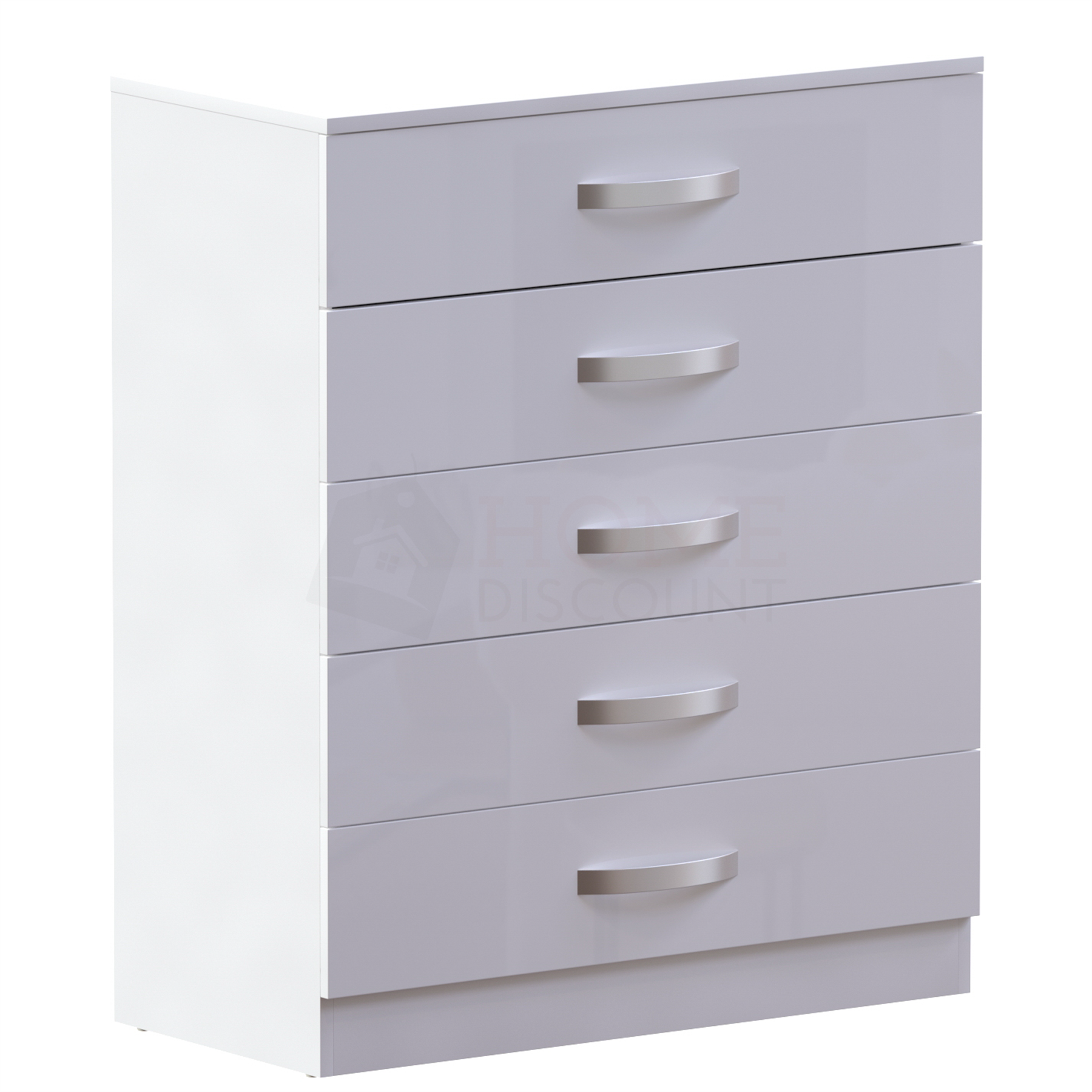 High Gloss Chest of Drawers Tall Wide 5 Drawer Bedroom Furniture Cabinet