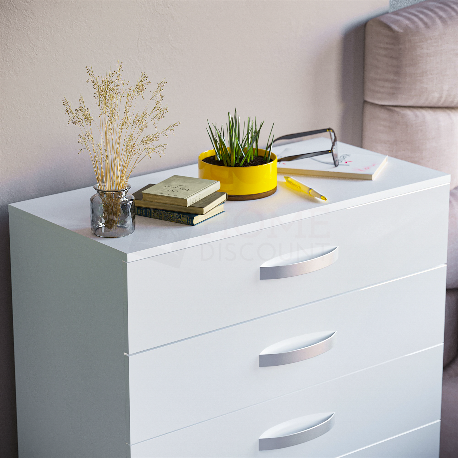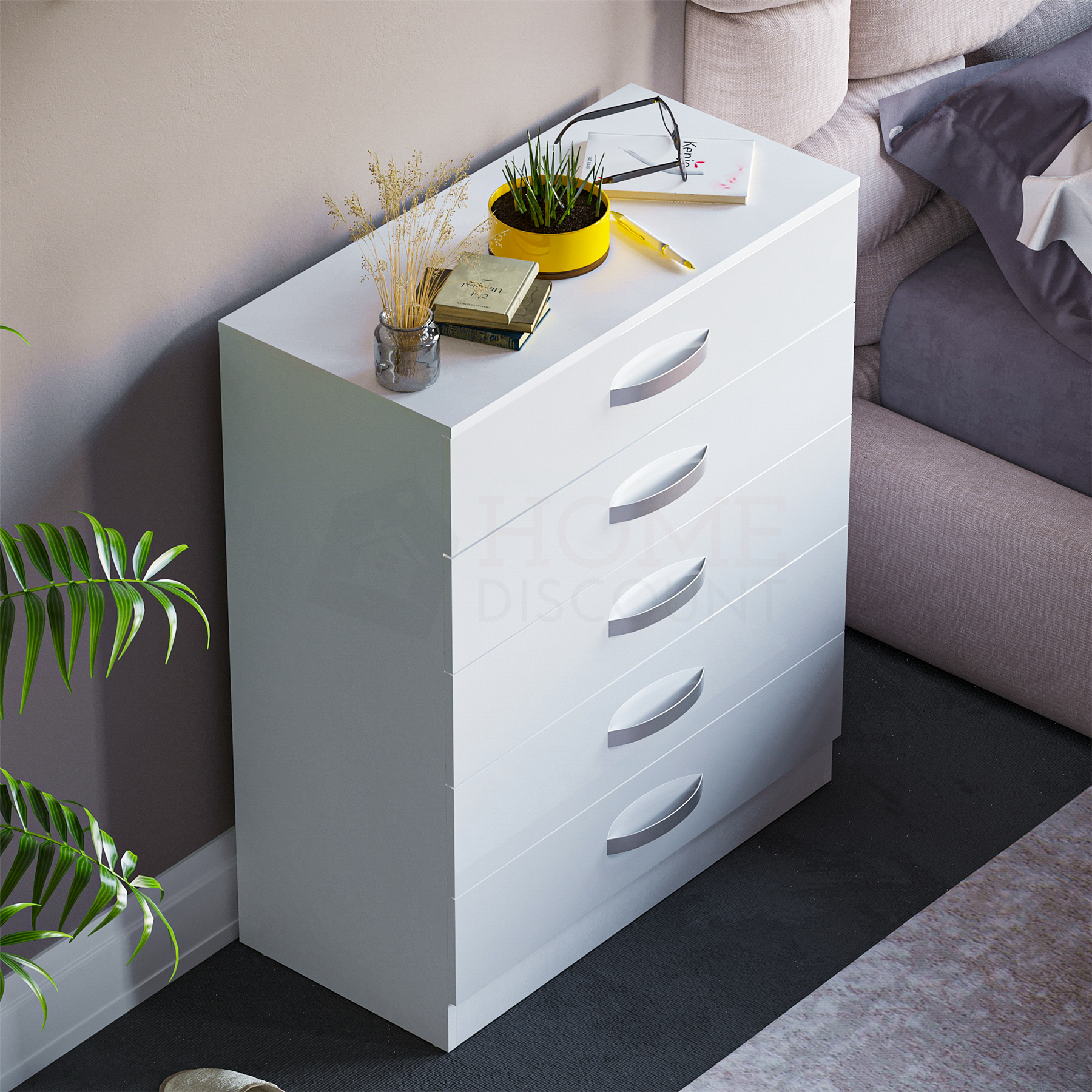 White 5 Chest of High Gloss Drawer Tall Cabinet Handle less Bedroom Furniture