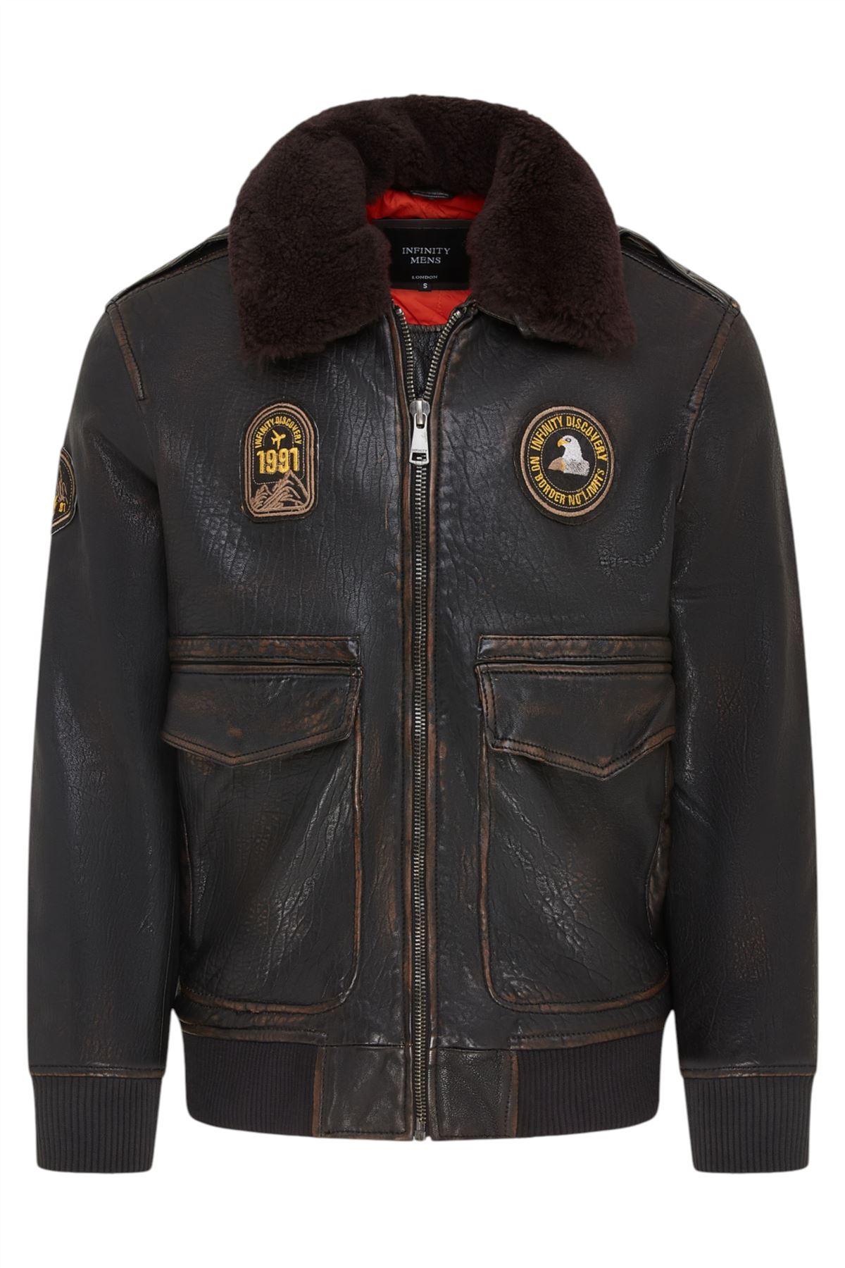 Infinity Leather Mens Brown Bomber Sheepskin Collar G-1 Aviator Jacket - Ararat Lamb Leather - Size 5xl