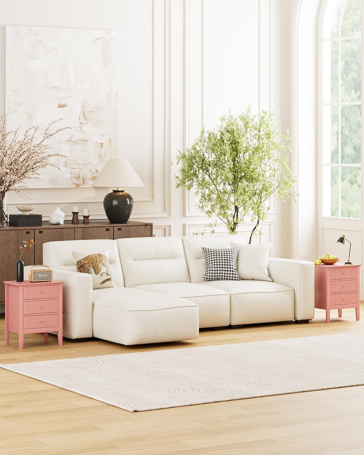 Modern Pink Bedside Table with 3 Drawers Wooden Nightstand Bedroom Storage