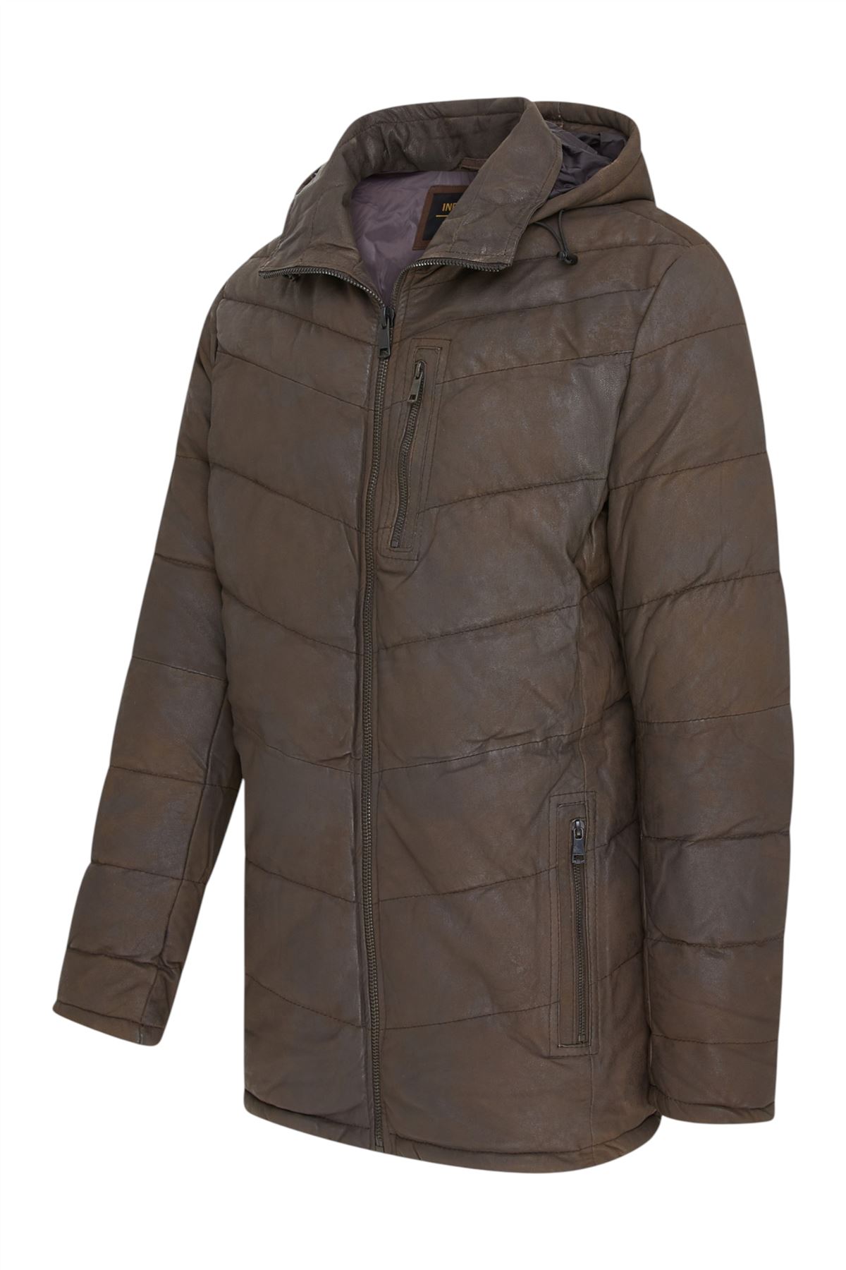 Infinity Leather Mens Brown Quilted Jacket Trekking Hooded Puffer Winter Coat - Summit Lamb Leather - Size X-Large