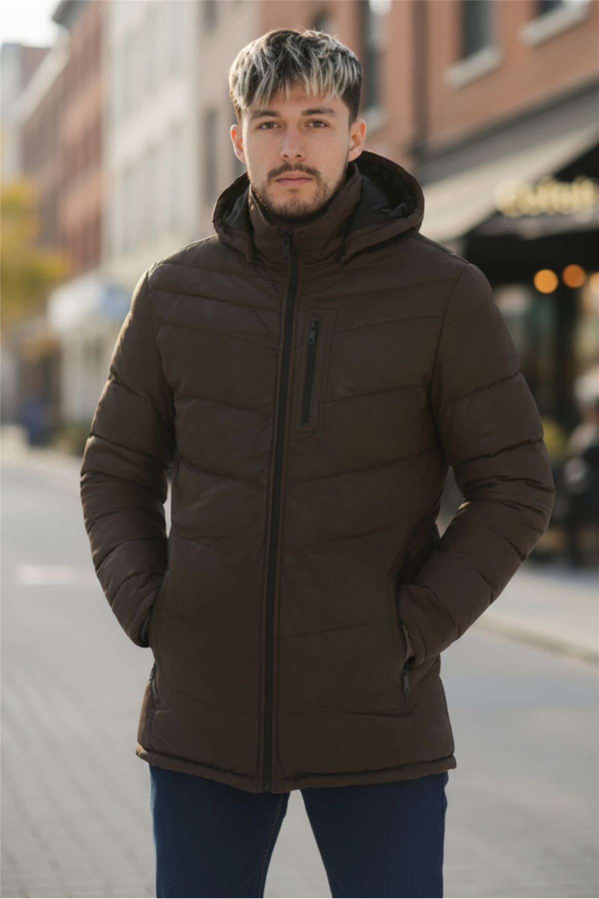 Infinity Leather Mens Brown Quilted Jacket Trekking Hooded Puffer Winter Coat - Summit Lamb Leather - Size X-Small