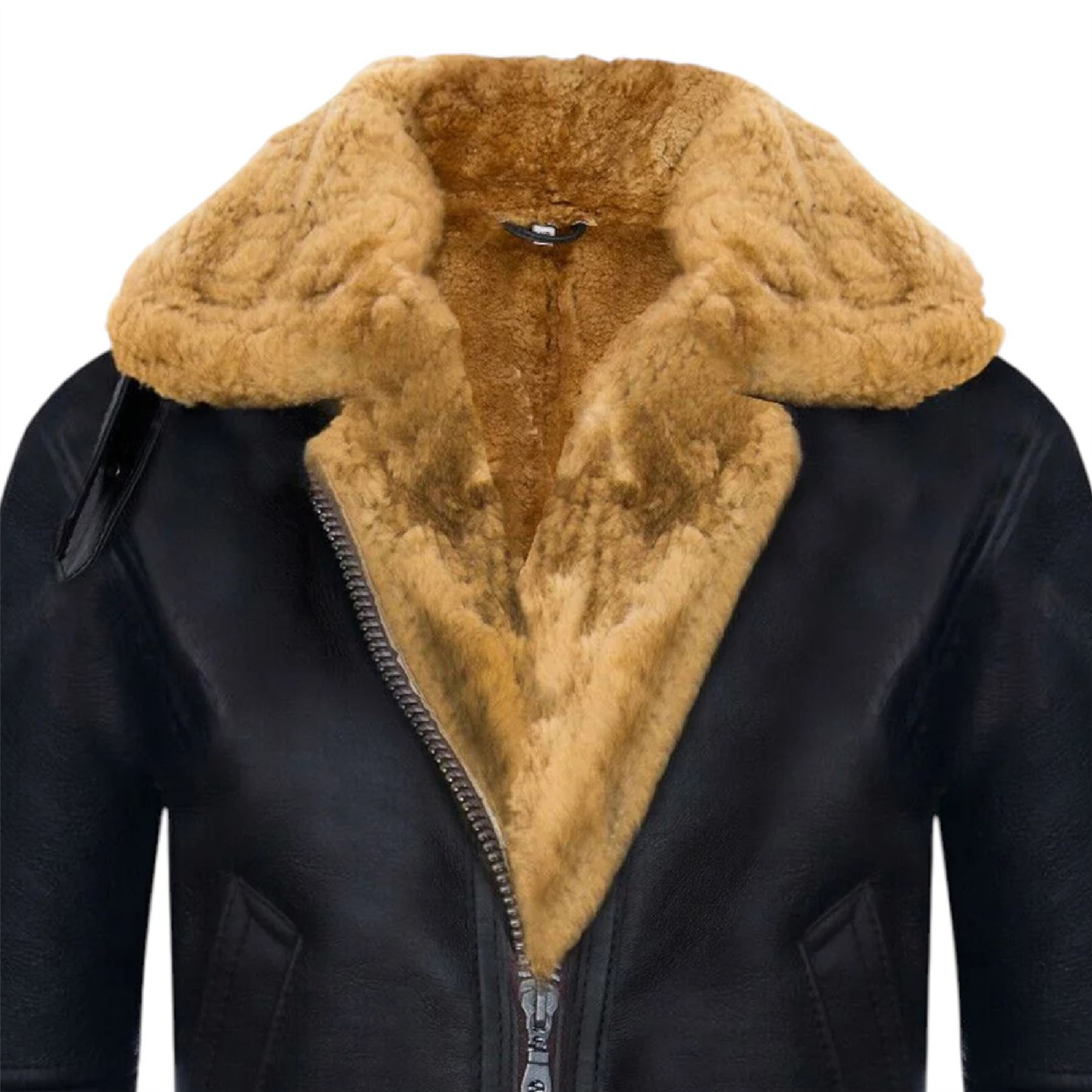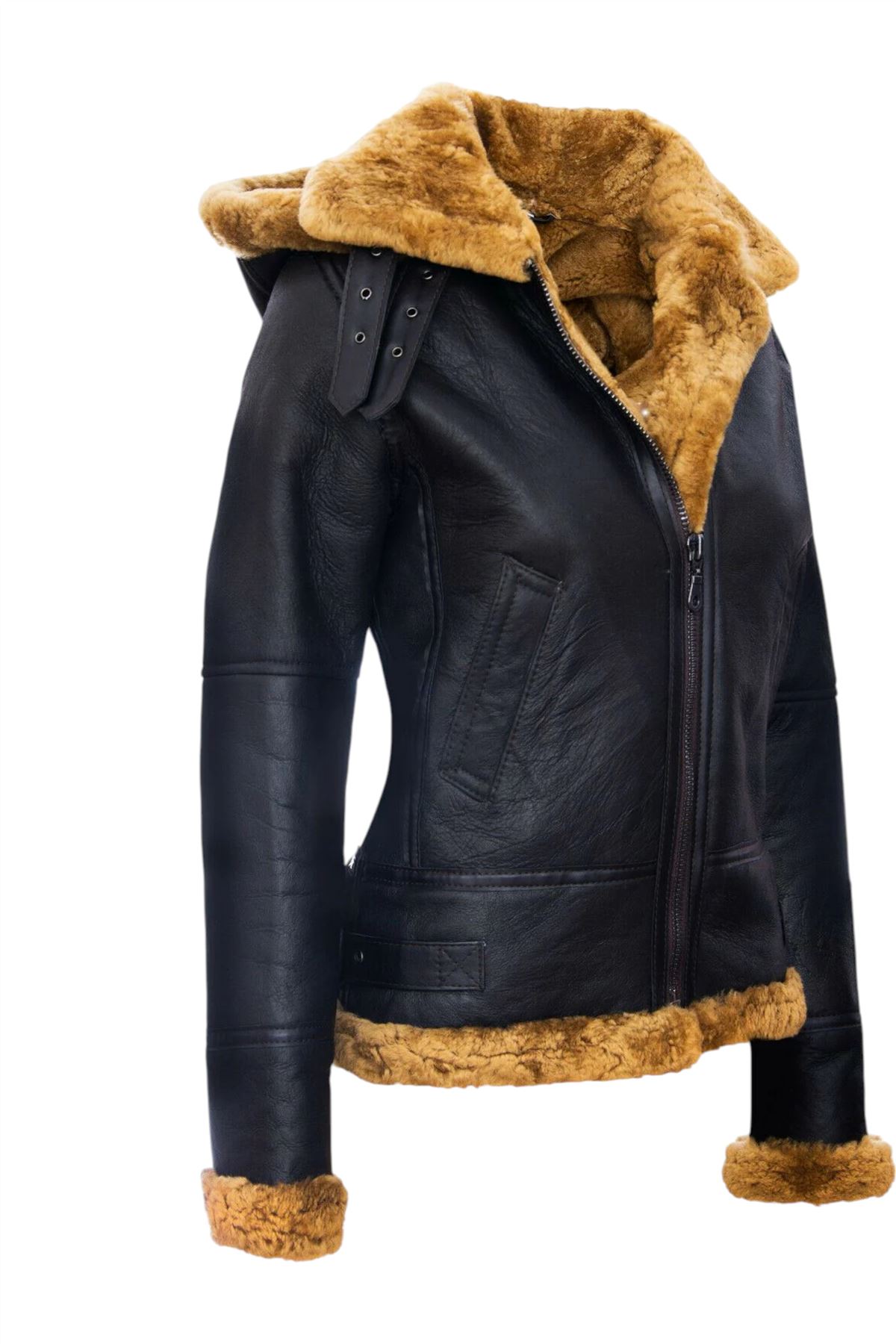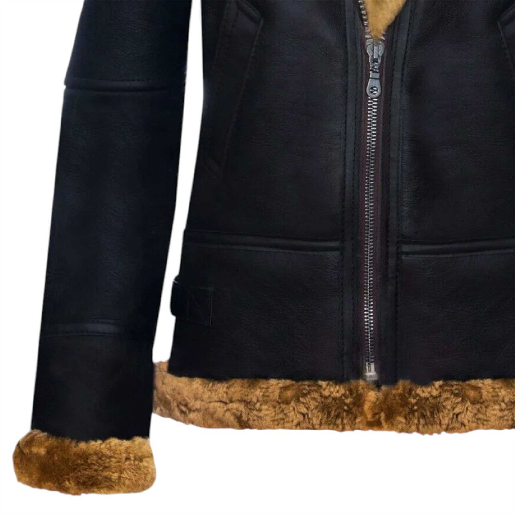 Womens Hooded Sheepskin B3 Flying Leather RAF Aviator Pilot Jacket
