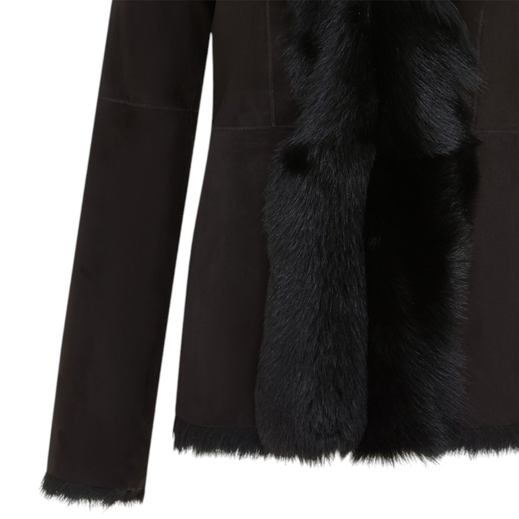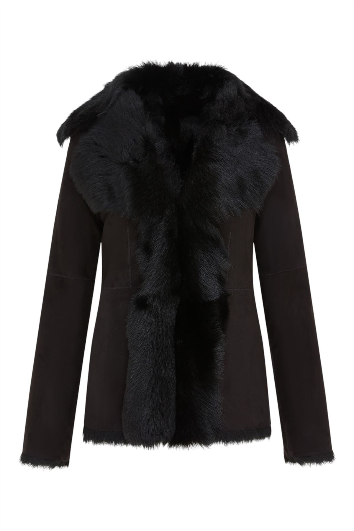 Women's Black Mid Length Sheepskin Toscana Coat Shearling Suede Leather Jacket