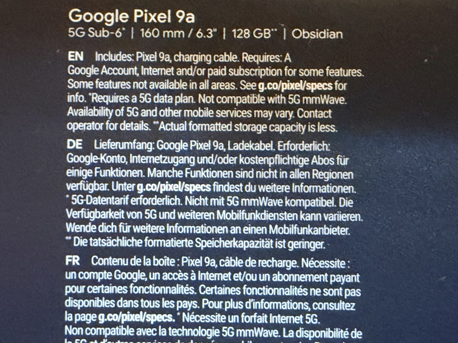 Google Pixel 9a -Obsidian - 128Gb - Unlocked - Mint Condition