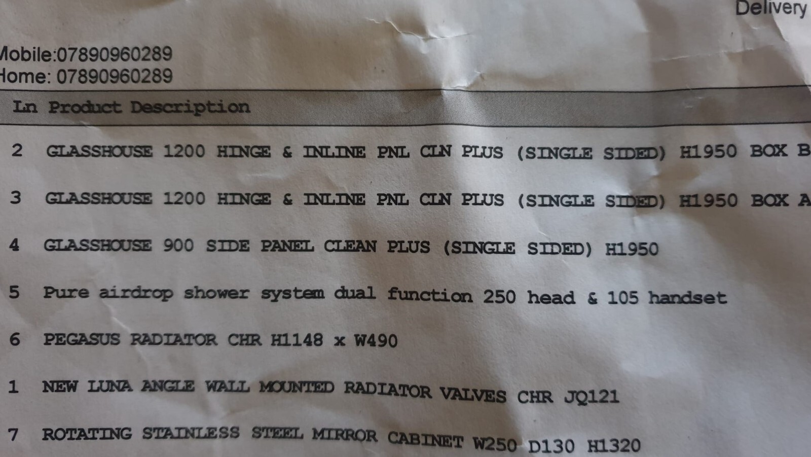 Pure Airdrop shower system dual function 250 head & 105 handset. New Lunar Angle Wall mounted radiator valves CHR JQ121. A complete unit that will look amazing when fitted. Glasshouse 900 side panel clean plus (single sides) H1950.