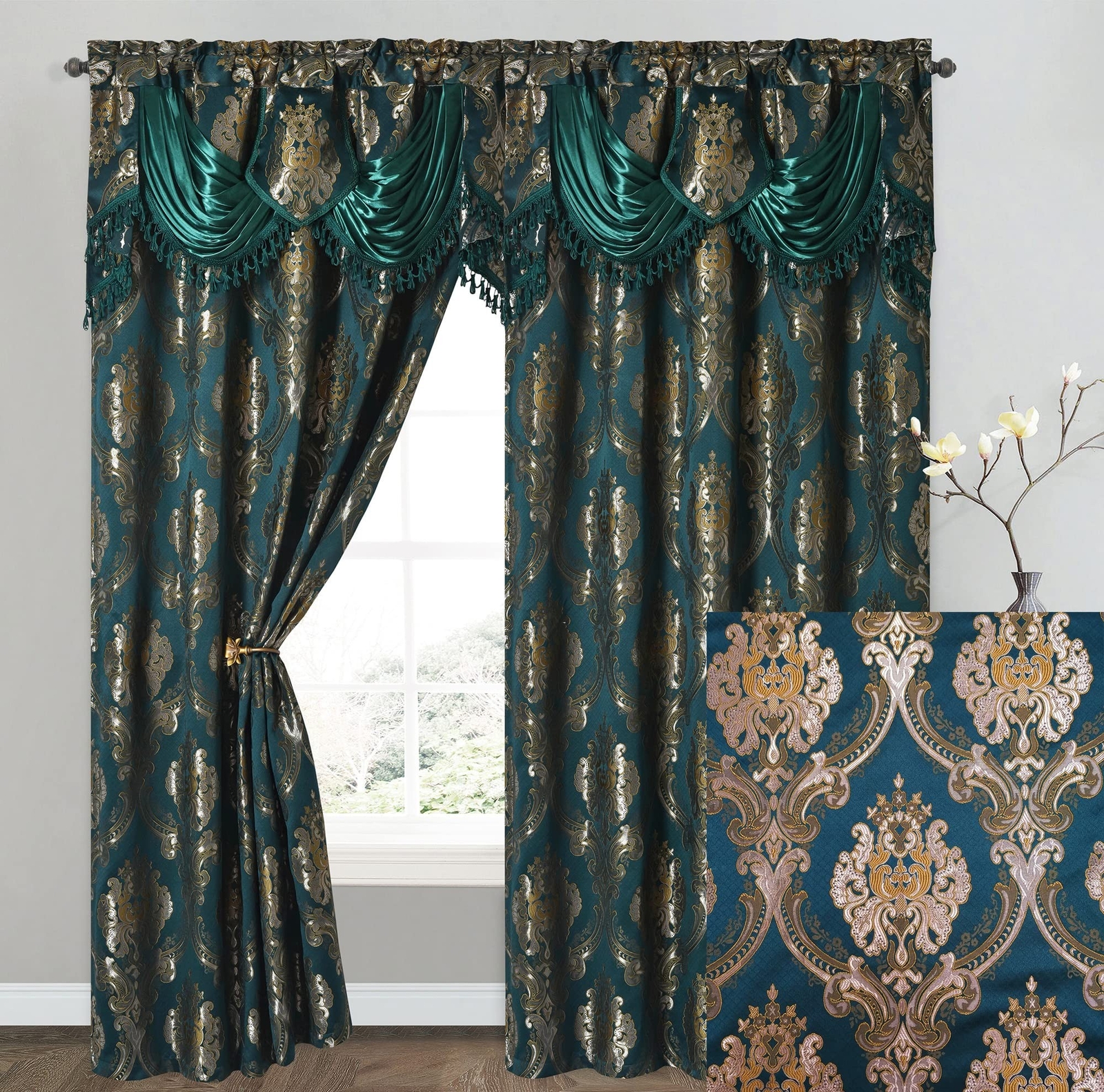 GOHD Luxe Love. Jacquard Window Curtain Panel Drape with Attached Fancy Valan...