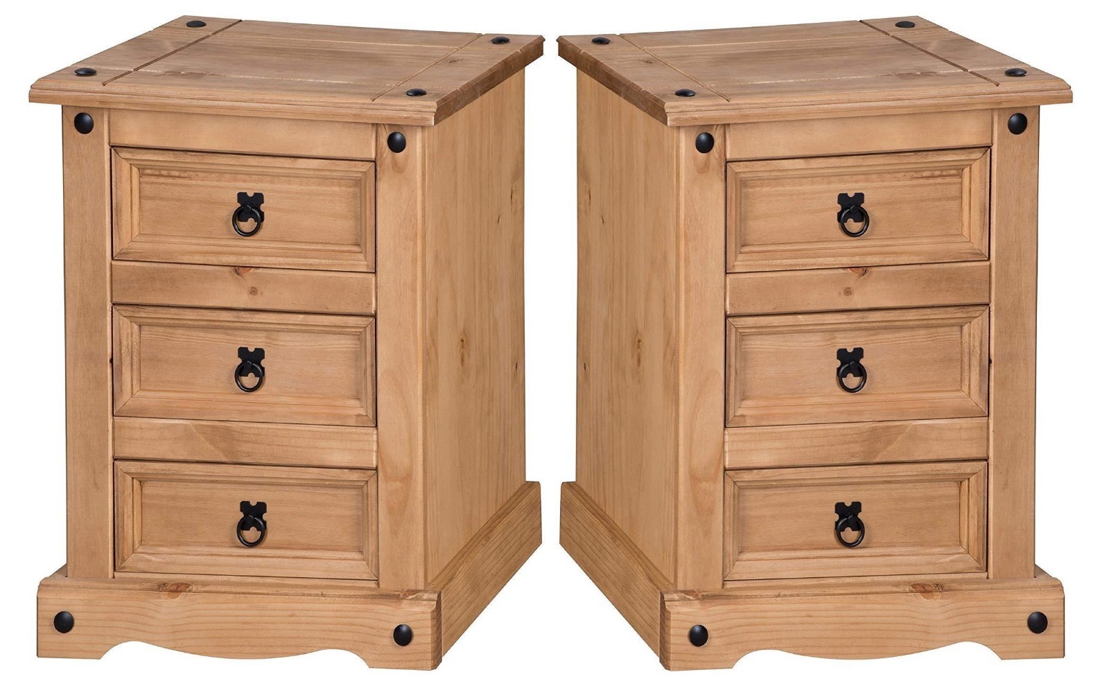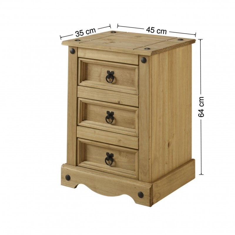 Corona Bedside Cabinet 3 Drawer Table Chest Mexican Solid Pine Nightstand