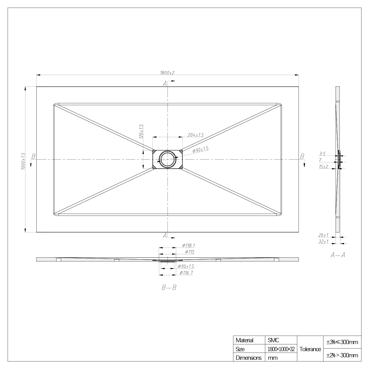 Shower Base Tray SMC White 100x80 F6G3