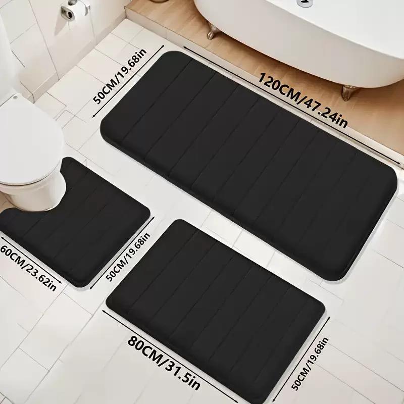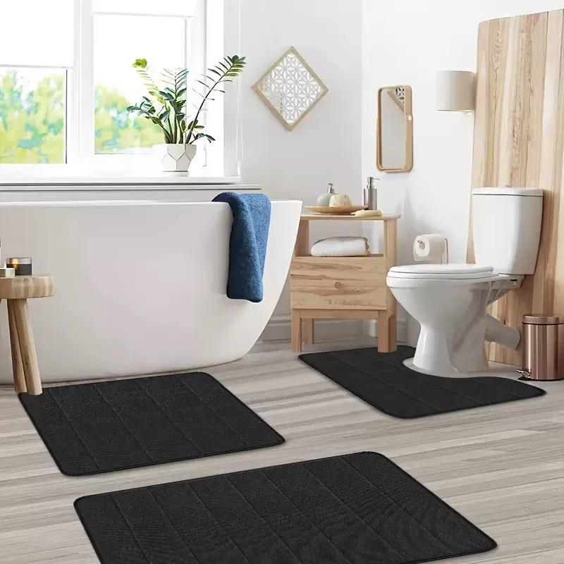3 x Memory Foam Bath Mat Non Slip Bathroom Super Soft Water Absorbent Door Black