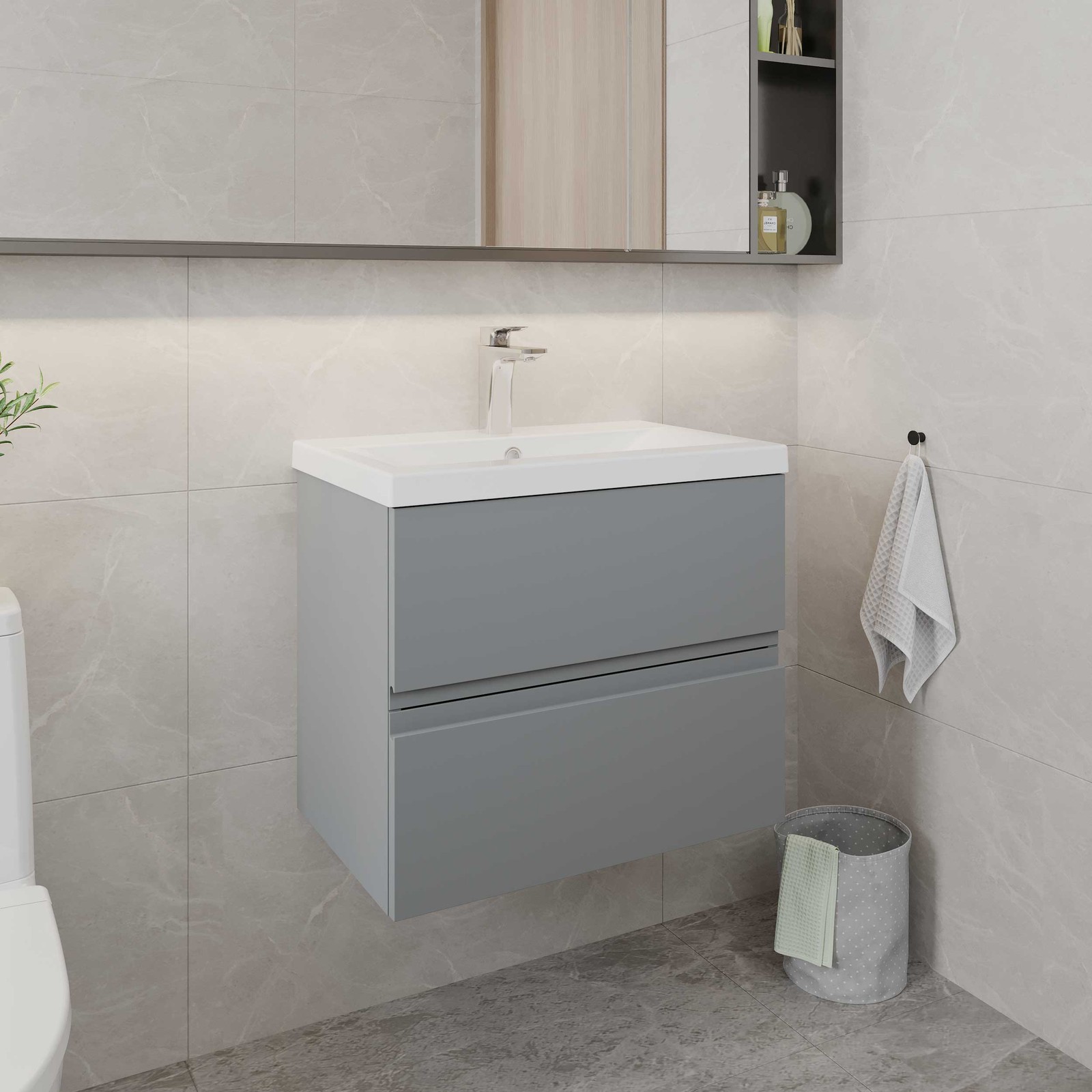 Hudson Reed Urban Wall Hung 2-Drawer Vanity Unit & Basin 2 Satin Grey 800mm Wide