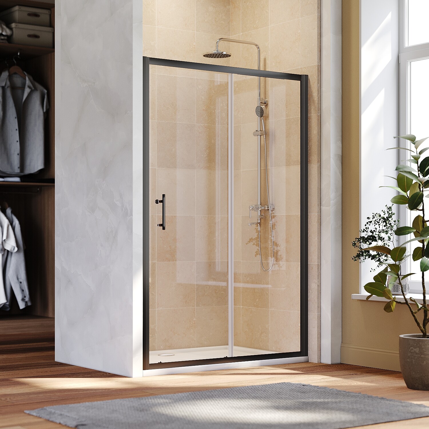1000mm Black Frame Sliding Shower Door Enclosure 6mm Tempered Glass with 1000x800mm Shower Tray, Waste Trap, Riser Kit - Elegant