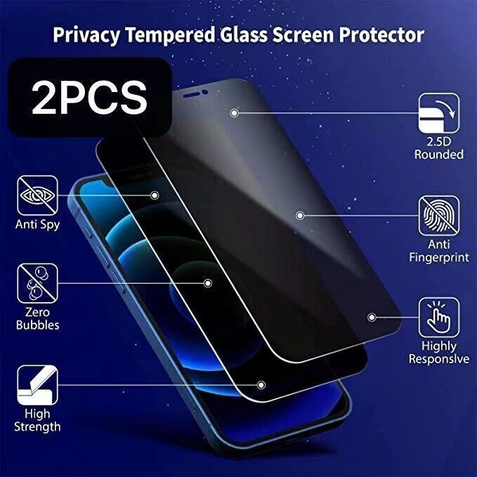 2 Pcs Privacy Tempered Glass Screen Protector For iPhone 13 14 15 16 17 Pro Max