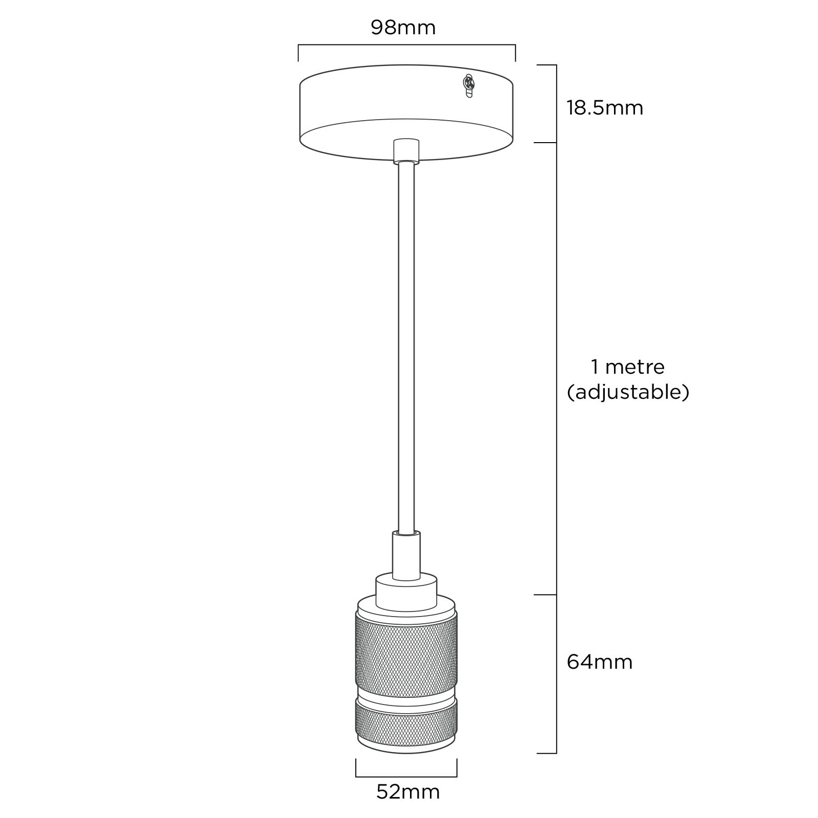 Perfect for hallways, bedrooms and kitchens that require a retro style. It can be installed onto any ceiling and the cable length can be adjusted to your preference. It can hold one ES screw fit light bulb.