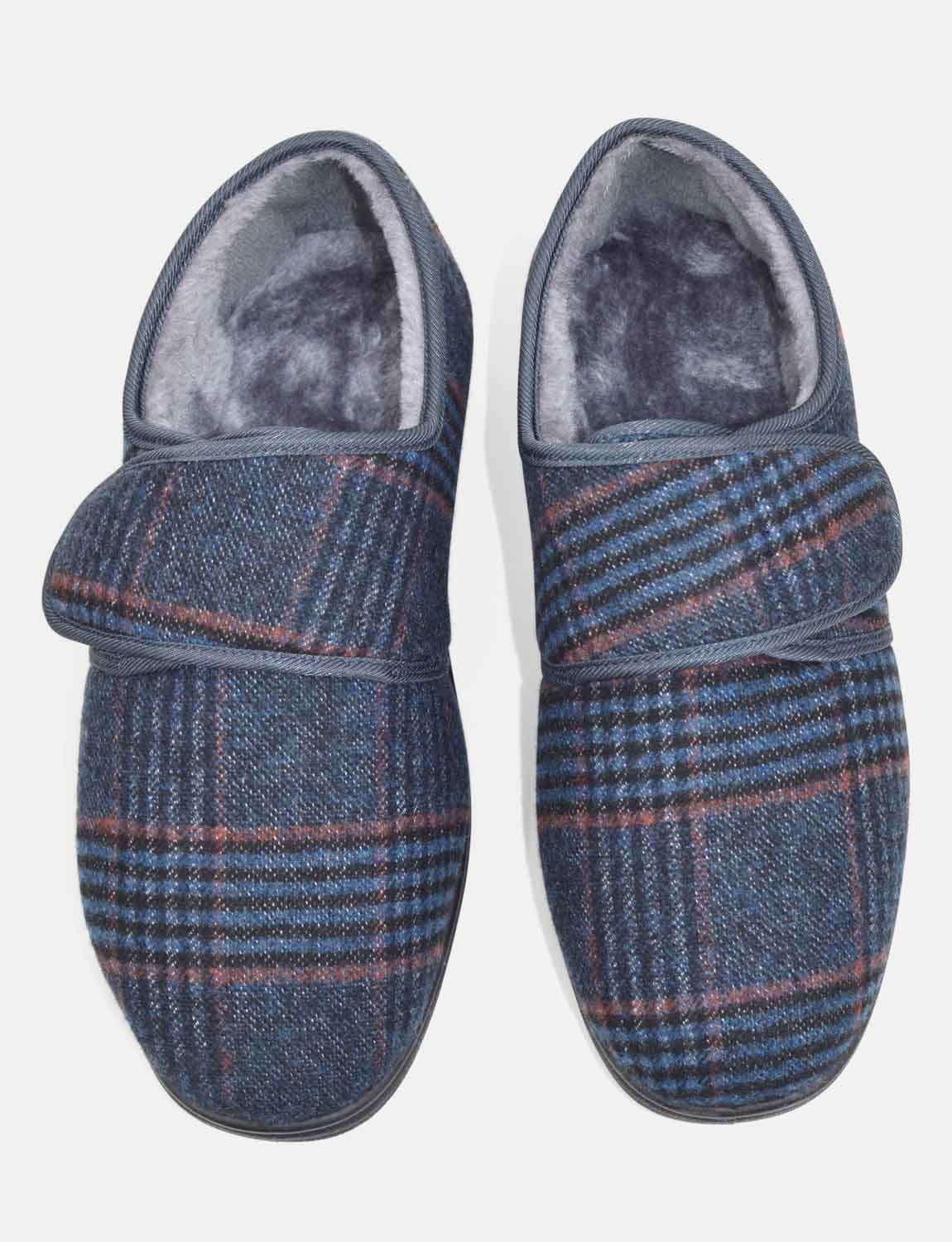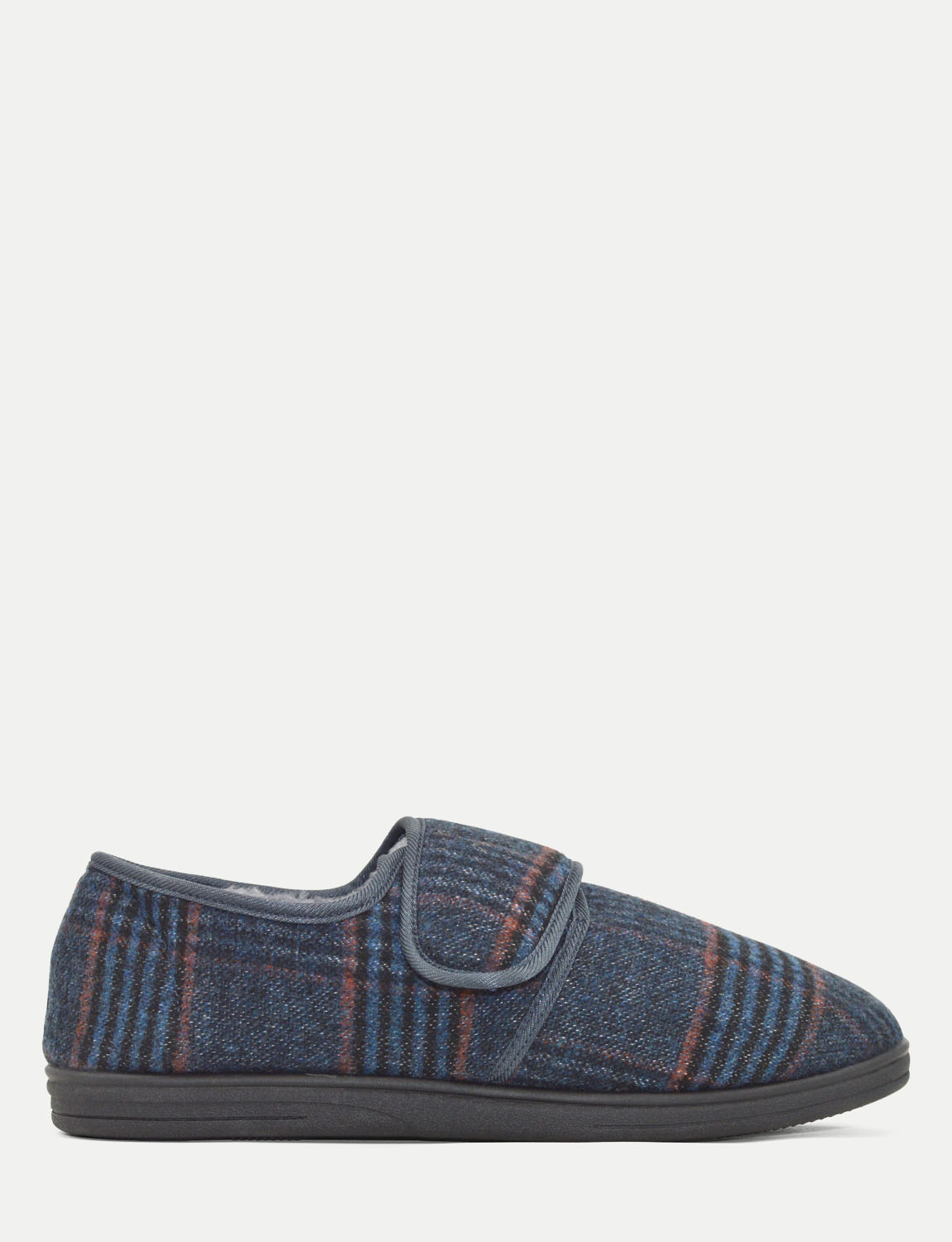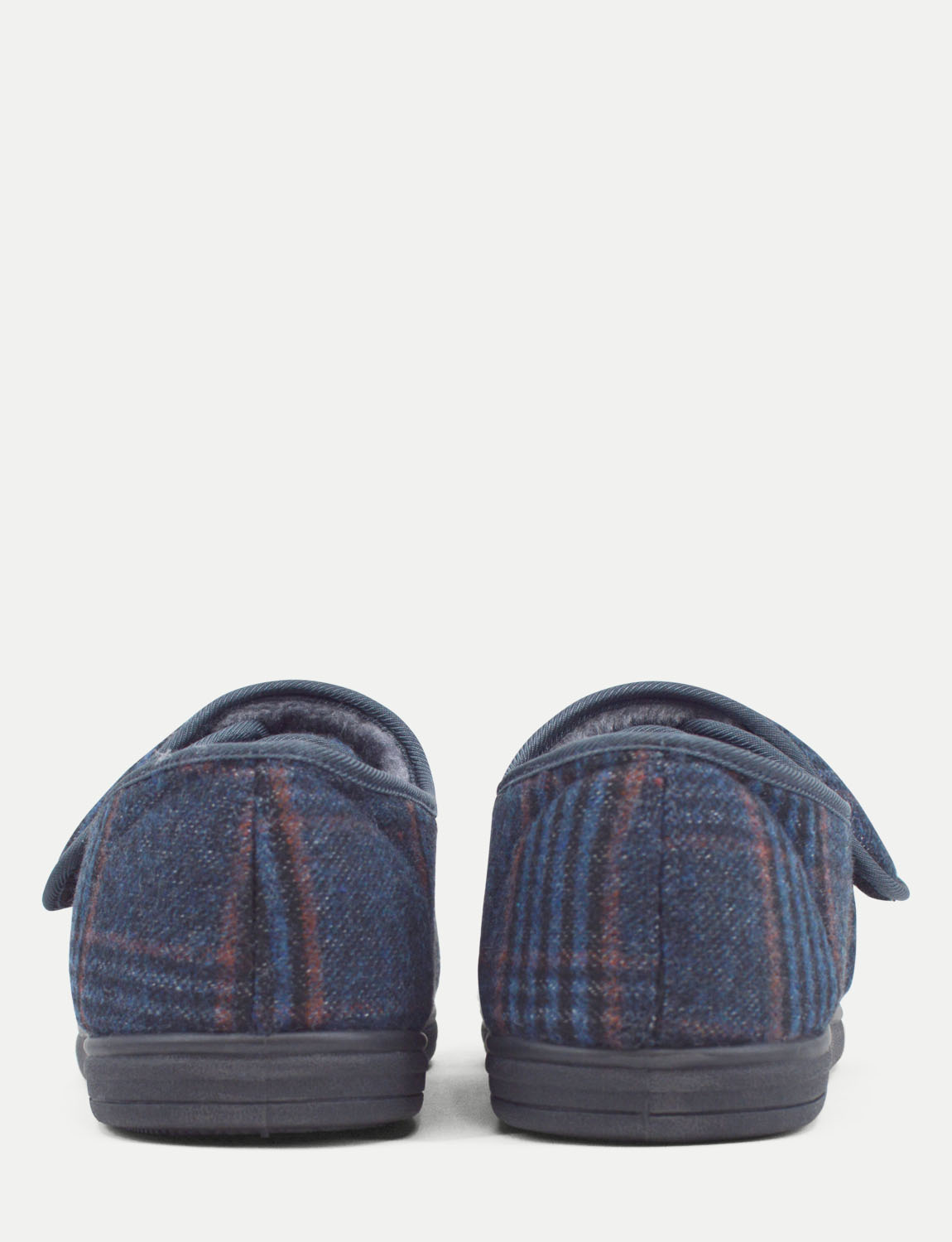 Chums Men's Dr Keller Wide Fit Faux Fur Lined Touch Fasten Slipper in Navy Size: 9 Navy 9