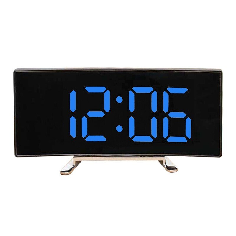 LED Curved Digital Alarm Clock USB Temperature Mirror Display Snooze Bedside UK