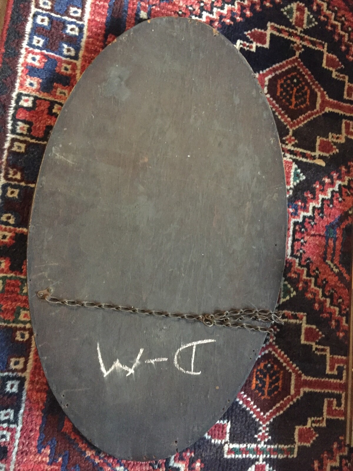 Antique Vintage Large Oval Wooden Wall Mirror.