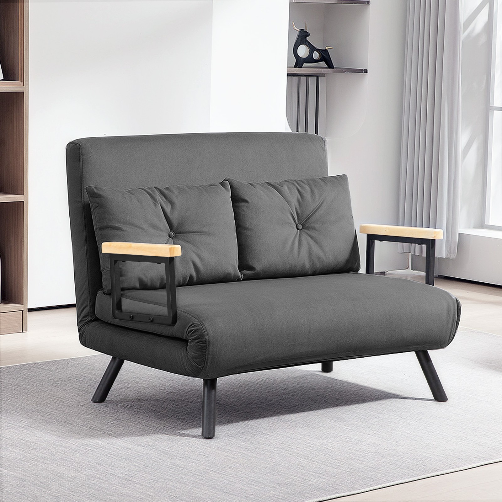 • Four-in-one convertible design: Transforms from a loveseat to a reclining two-seater sofa, a floor settee, or a temporary 183cm double bed. Velvet-feel upholstery for a soft finishing touch. ● Four-in-one: loveseat to a reclining two-seater sofa, a floor settee or a temporary 183cm double bed.