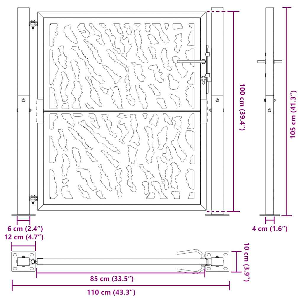 vidaXL Garden Gate Anthracite 105x205 cm Steel Bamboo Design