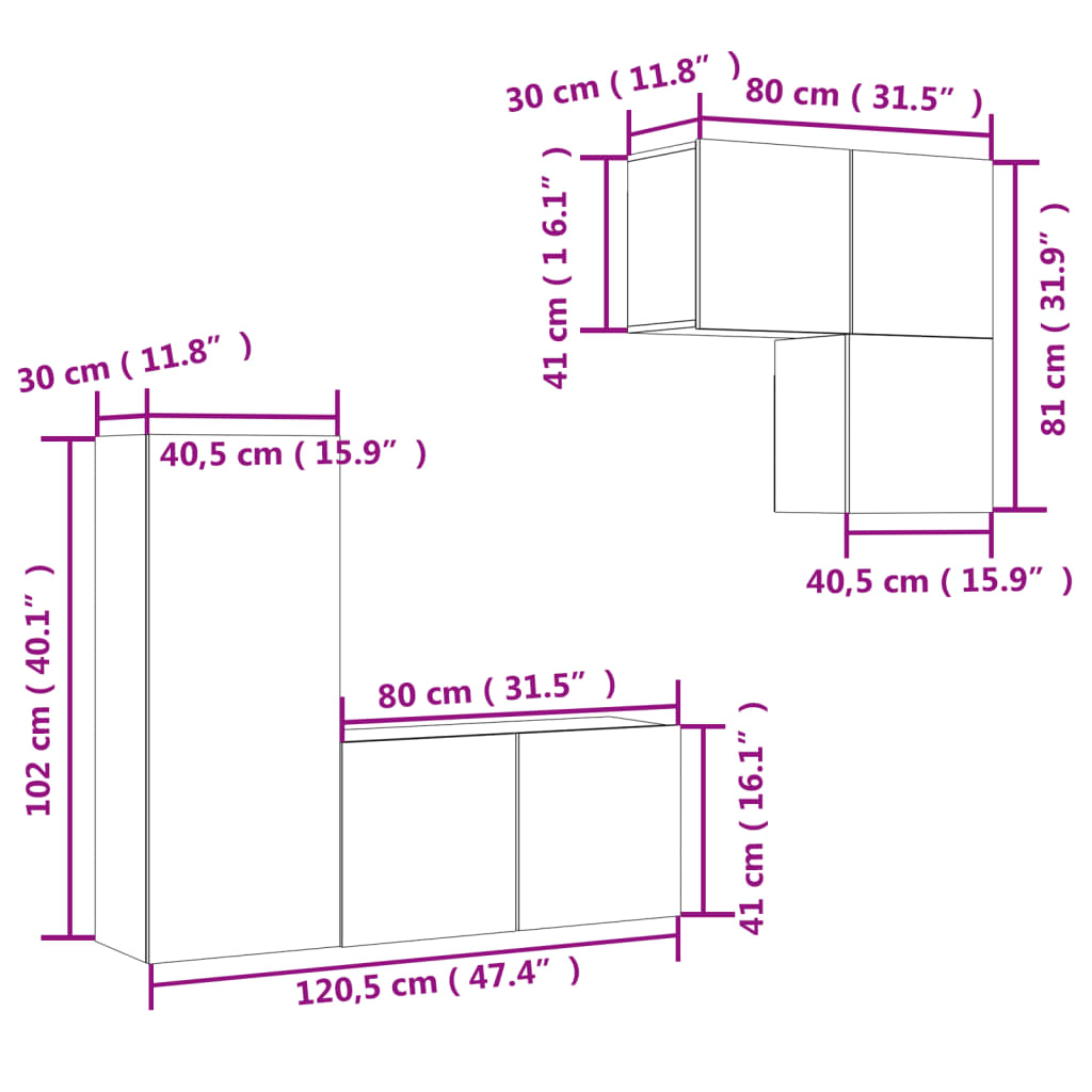TV Wall Units 4 Piece Floating TV Wall Unit TV Stand Engineered Wood vidaXL
