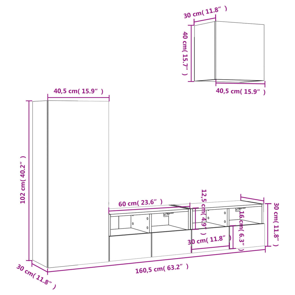 TV Wall Units 4 Piece with LED Floating TV Cabinet Engineered Wood vidaXL