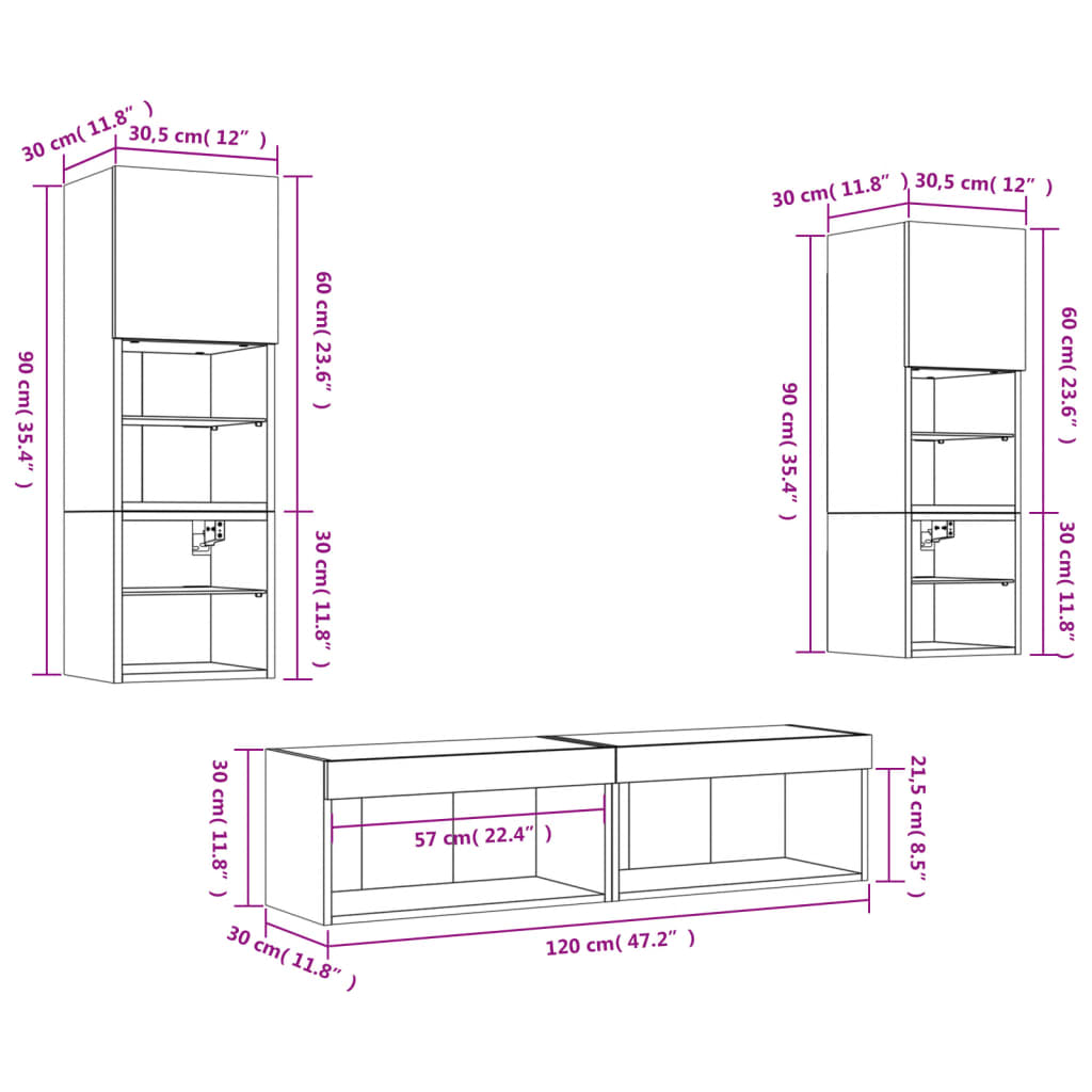 Vidaxl - 6 Piece tv Wall Units with led Smoked Oak Engineered Wood