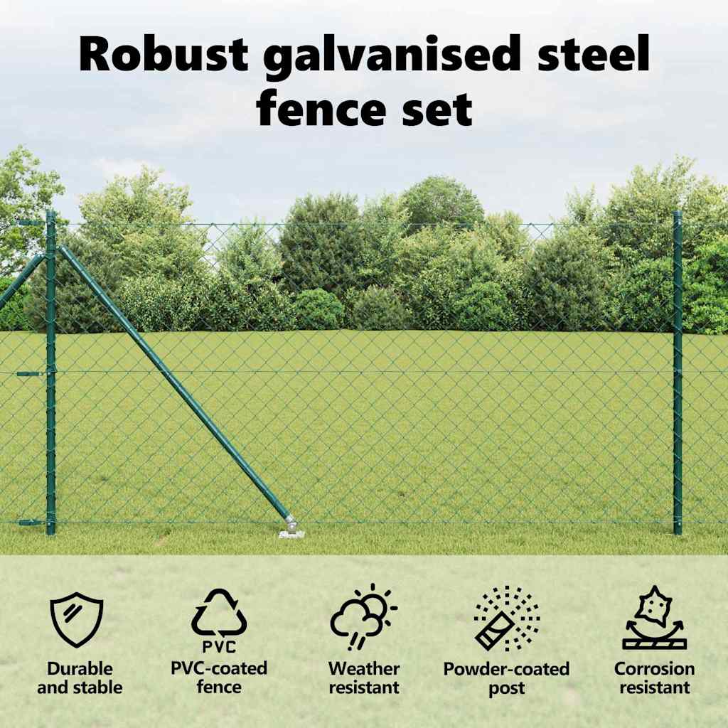 Chain Link Fence with Posts Steel Panel Set Garden Barrier Security vidaXL