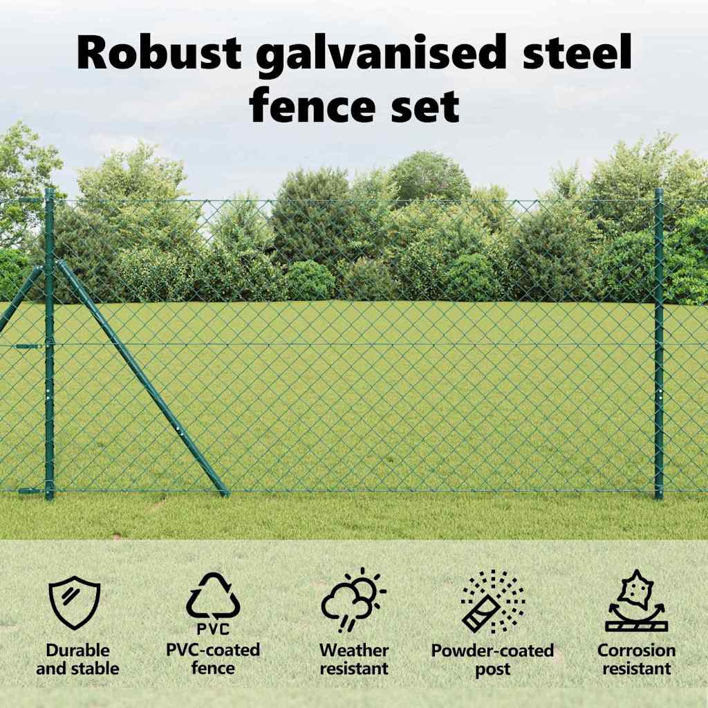 Chain Link Fence with Posts Steel Panel Set Garden Barrier Security vidaXL