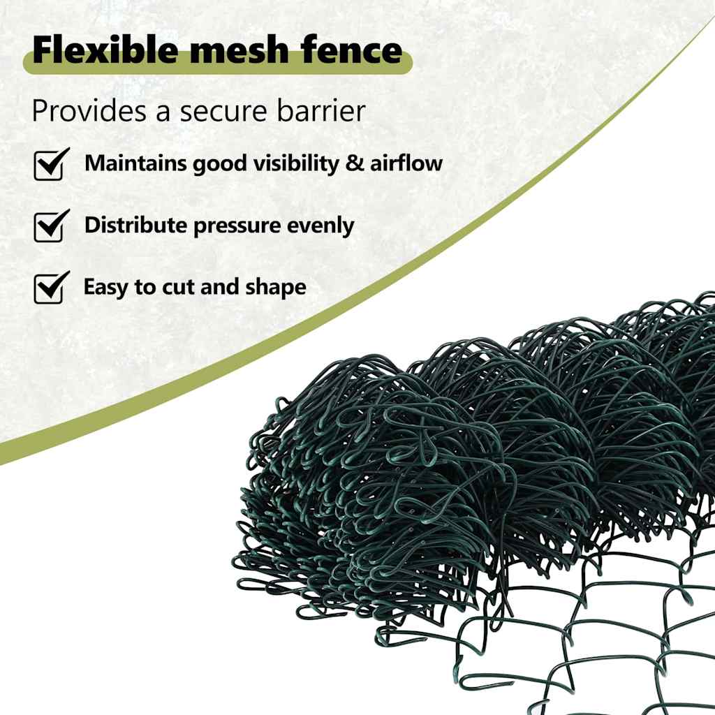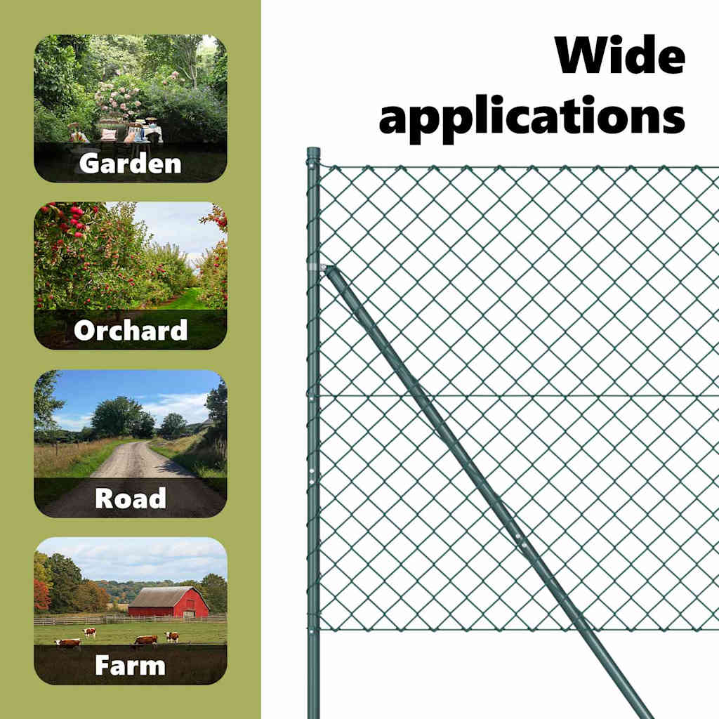 This chain link fence with posts is a solid choice for an outdoor barrier. It’s made tough to create a reliable partition for gardens and terraces. Built mainly from steel, this fence is a classic way to enclose spaces with its strong build and practical design. It looks neutral enough to fit in with any garden style, adding both shape and function as a property boundary or privacy screen. Steel Material: Made from excellent steel, this outdoor fence panel set is super strong and durable. Steel is known for lasting ages and handles daily use well, ensuring your space is secure with a reliable boundary. Plus, the steel gives it a stylish, industrial vibe in any outdoor area. Included Fence Components: The fence comes with everything you need, like posts, making setup easy and keeping your boundary line straight.