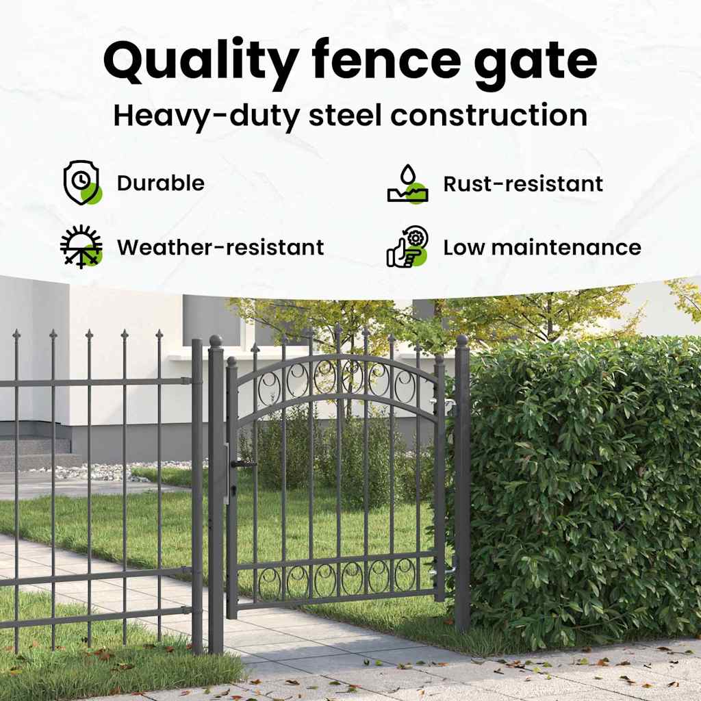 Fence Gate Single Door with Arched/Spike Top Steel Black Multi Sizes vidaXL