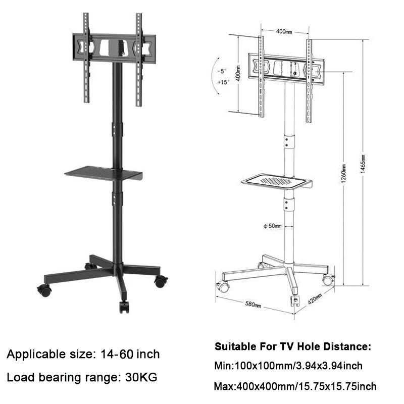 Mobile TV Stand with Wheels for 14 to 55 Inch TVs Floor Mount Bracket Trolley