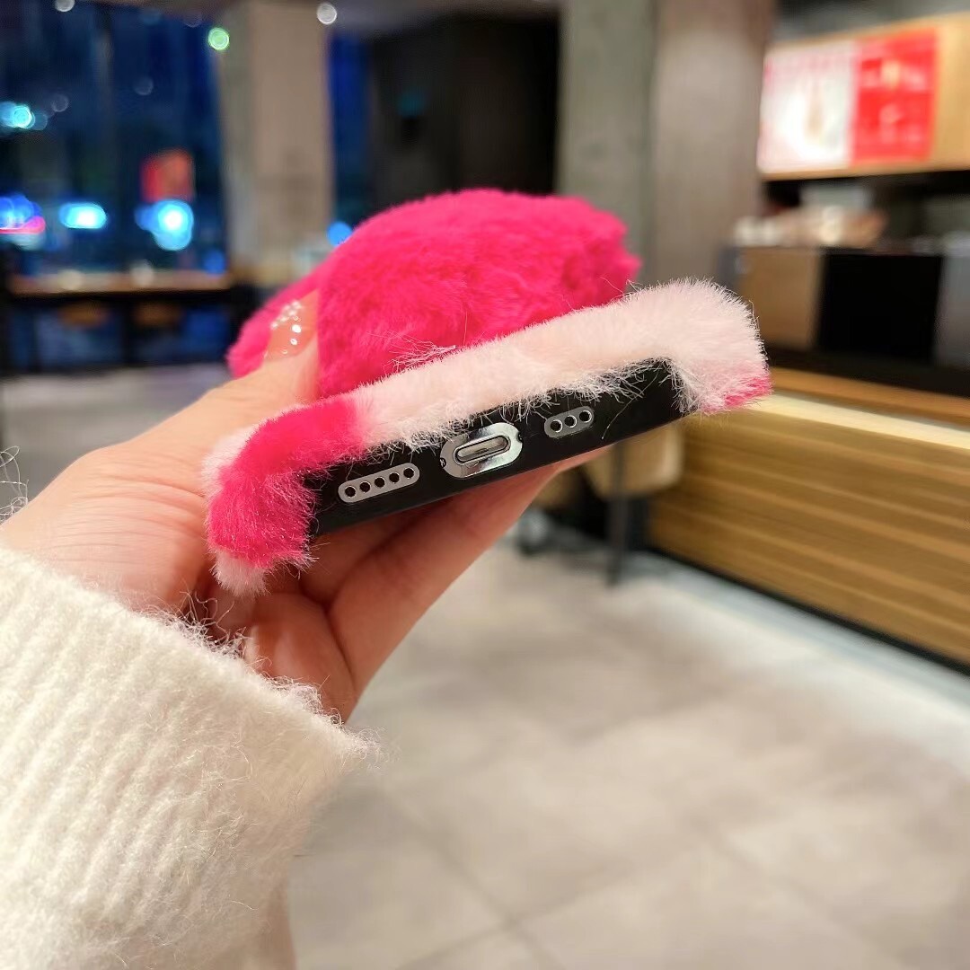 Cute Cartoon Plush Shockproof Fluffy Soft Phone Case For iphone Samsung Covers