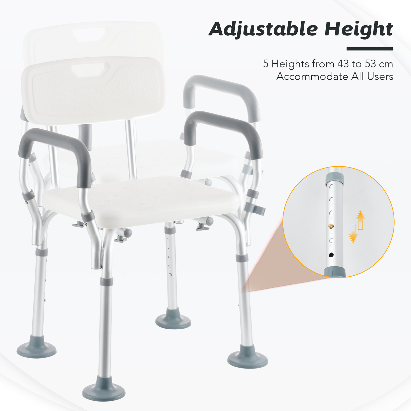 Costway - Shower Chair with Handles, Height Adjustable Padded Tub Shower Seat, Elderly Handicap Non-Slip Disabled Bathroom Bathtub Stools