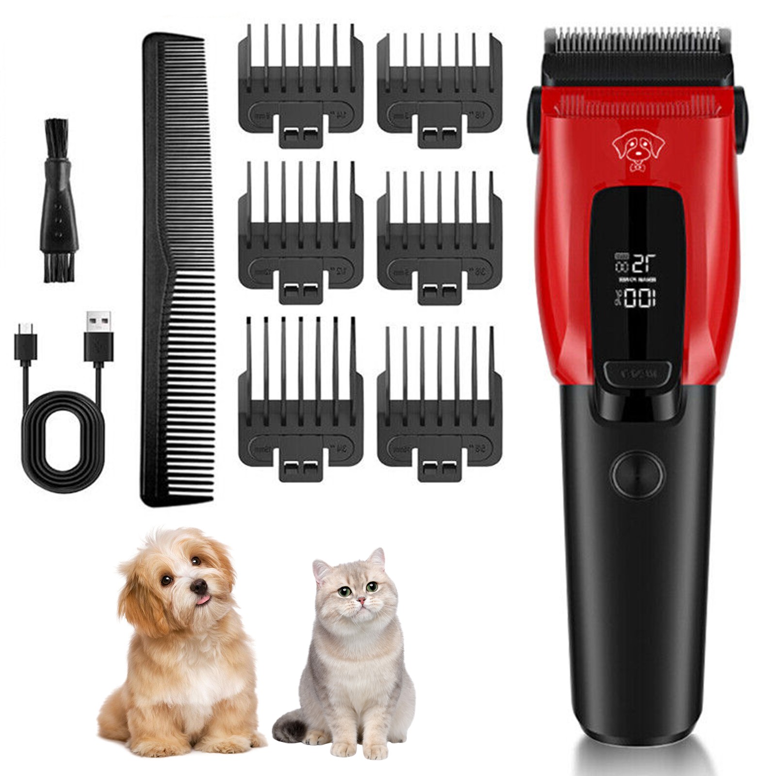 IKODM Promotion Dog Clippers for Long Thick Hair Electric Cordless Kit, Professional Dog Cat Animal Clippers, Pet Grooming Kit, Safe Sharp Blade, Low