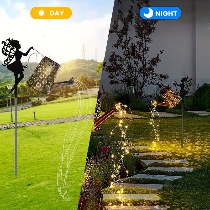 SOLAR POWERED WATERING CAN 90 LED STRING LIGHT OUTDOOR GARDEN ART LAMP DECOR UK