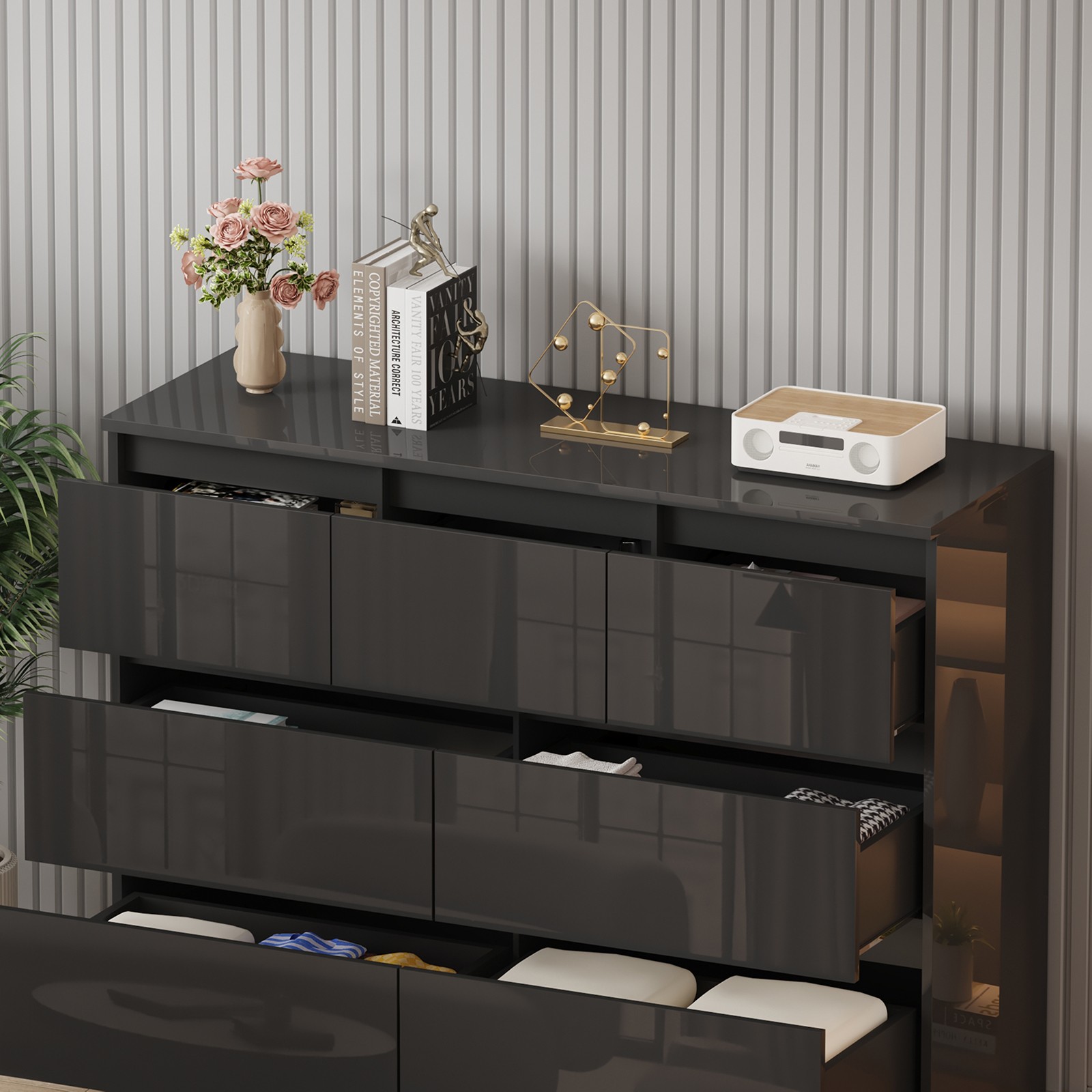 High Gloss Drawer Cabinet 6/7/8 Drawers Dressing Table Storage Cabinet Bedroom