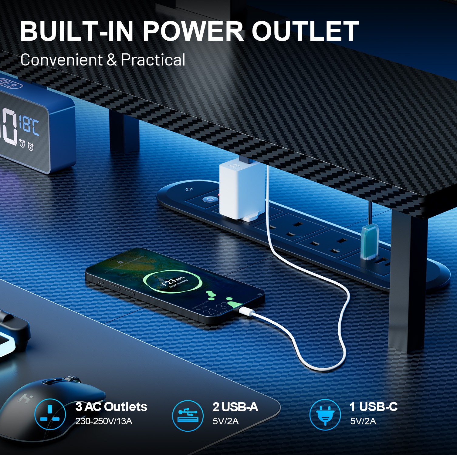 Electric Height Adjustable Standing Desk with digital control panel, 60x120cm