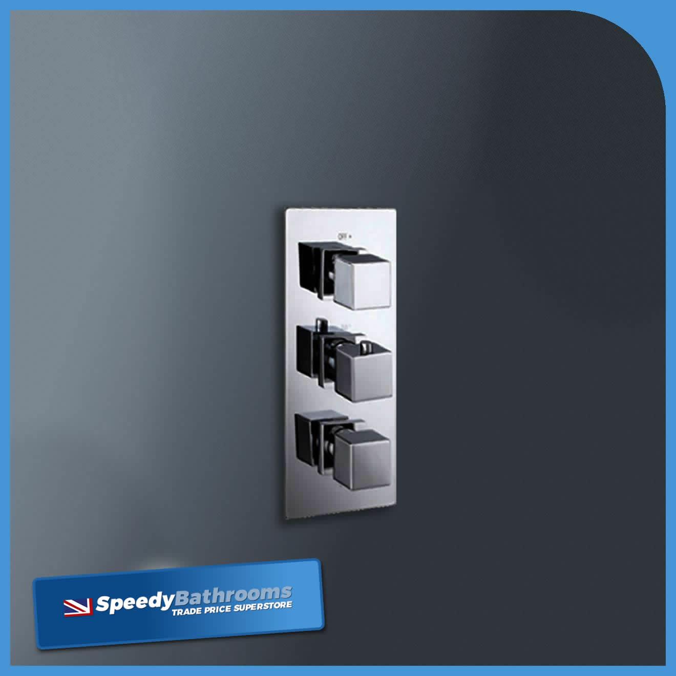 Nes Home Chrome Square 3 Way Triple Thermostatic Valve with Round Shower Head + Handset in Silver Silver