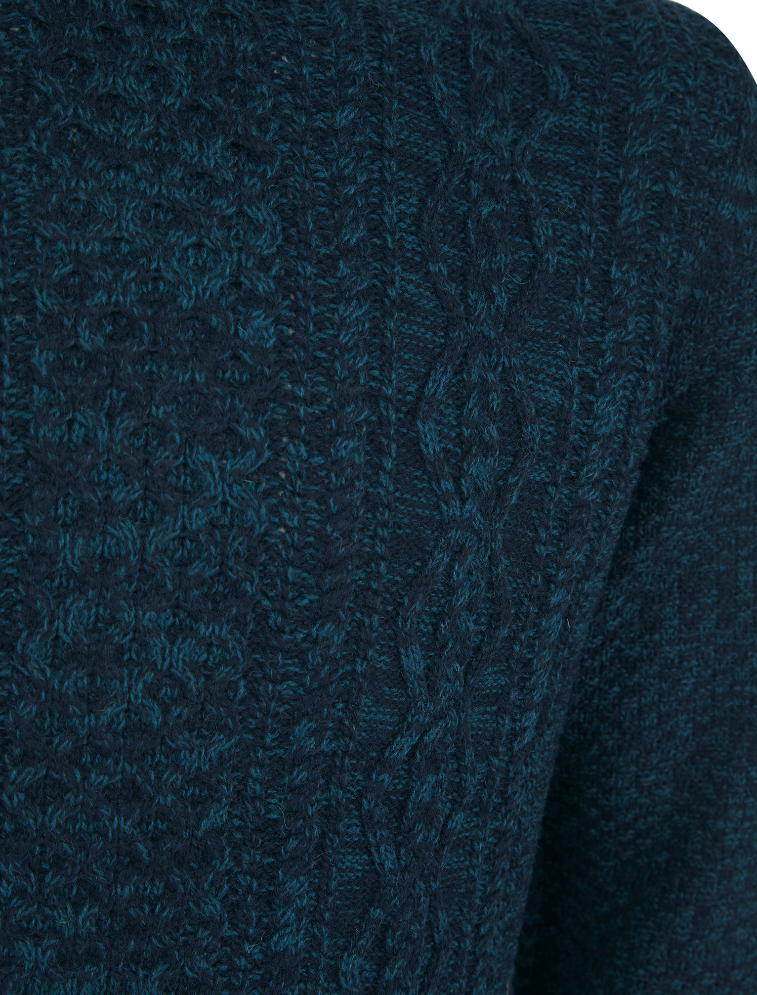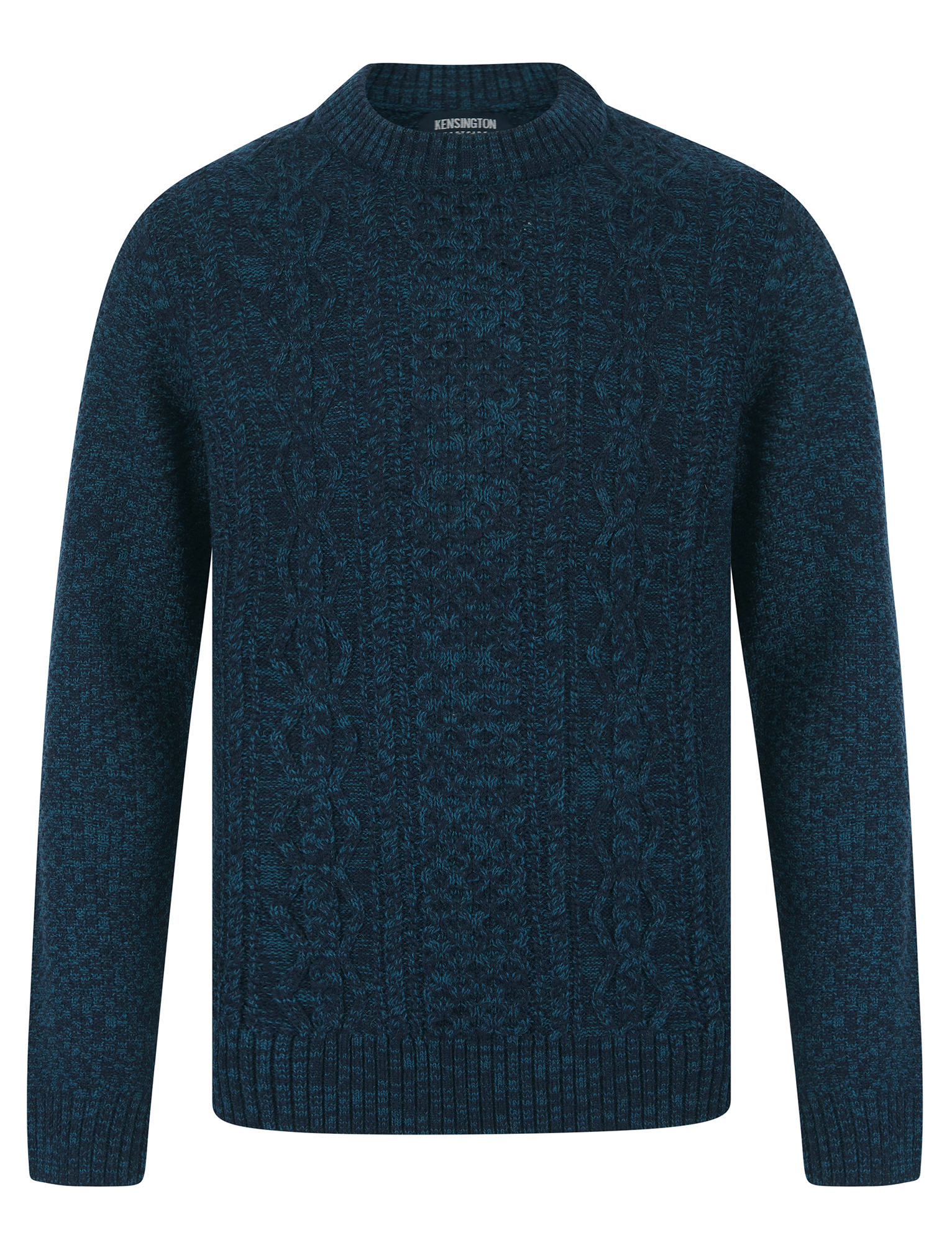 Men's Cable Knit Jumper Aran Style Wool Blend Chunky Crew Neck Warm Sweater