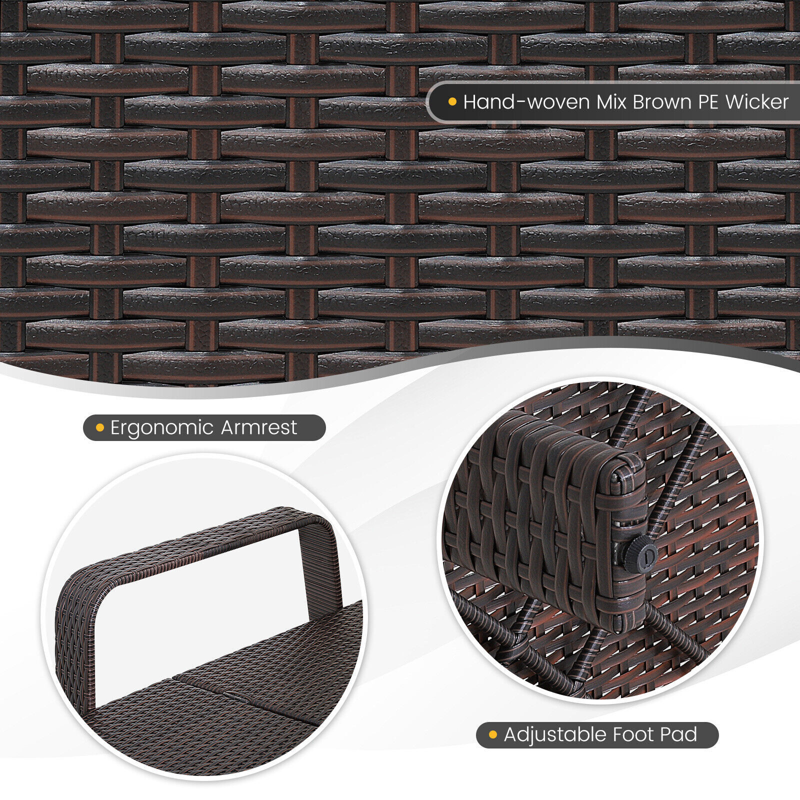 Outsunny - Sun Lounger Steel Frame Outdoor Folding Chaise Texteline Lounge Chair Recliner with Headrest & 7 Levels Adjustable Backrest Brown